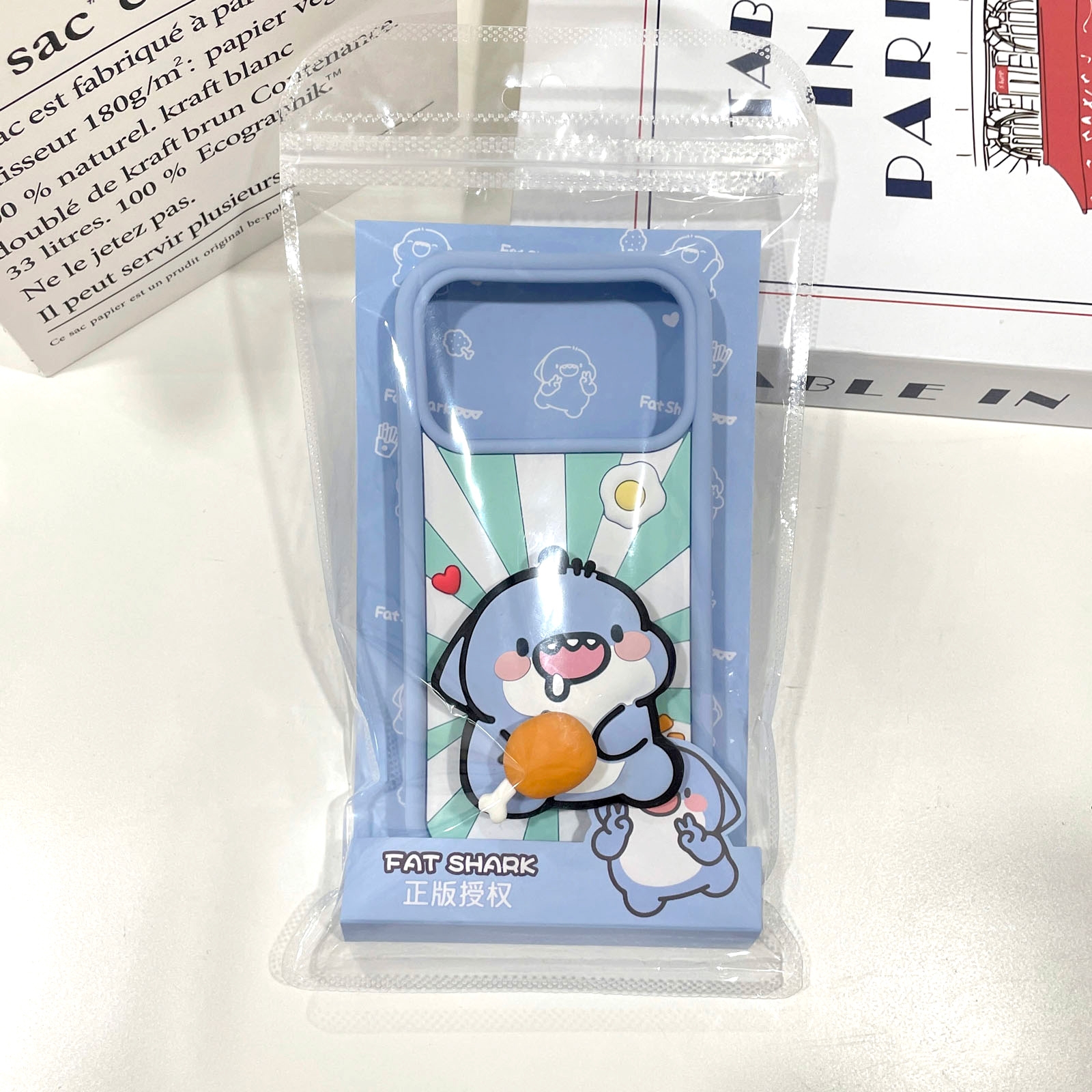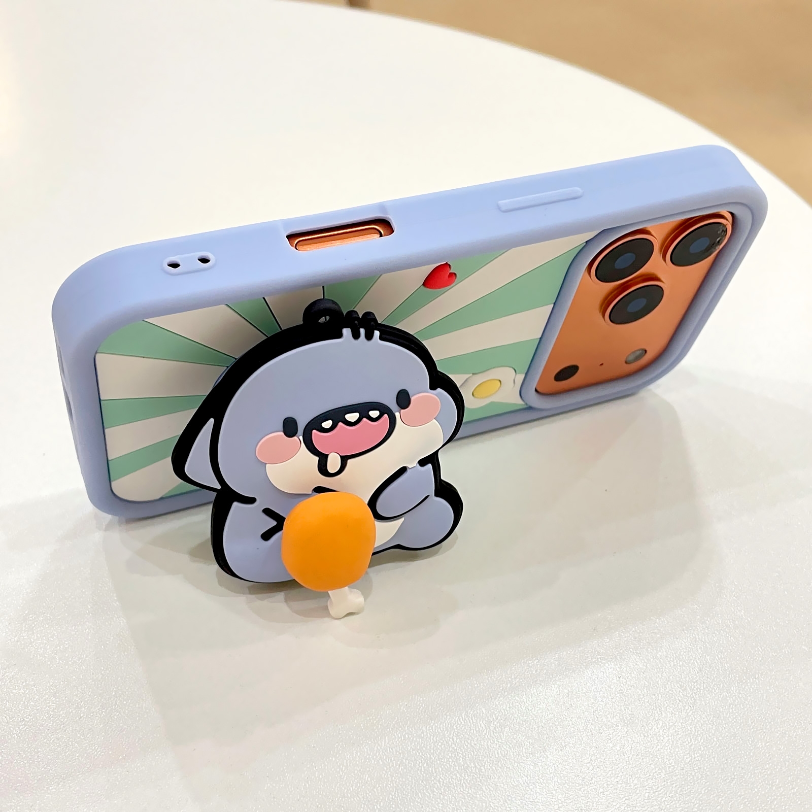 3D Fat Shark with Chicken Drumstick for iPhone 17 Pro Max - Soft Silicone cover with Rotatable Kickstand, Light Blue