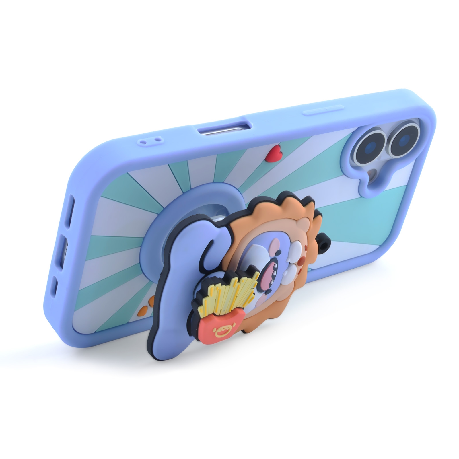 3D Fat Shark with Lion Hat Case for iPhone 17 Pro Max - Soft Silicone cover with Rotatable Kickstand, Light Blue