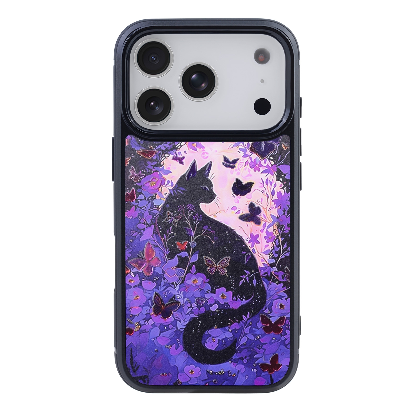 Mysterious Cat and Purple Flowers Print Magnetic Case for iPhone 17 Pro