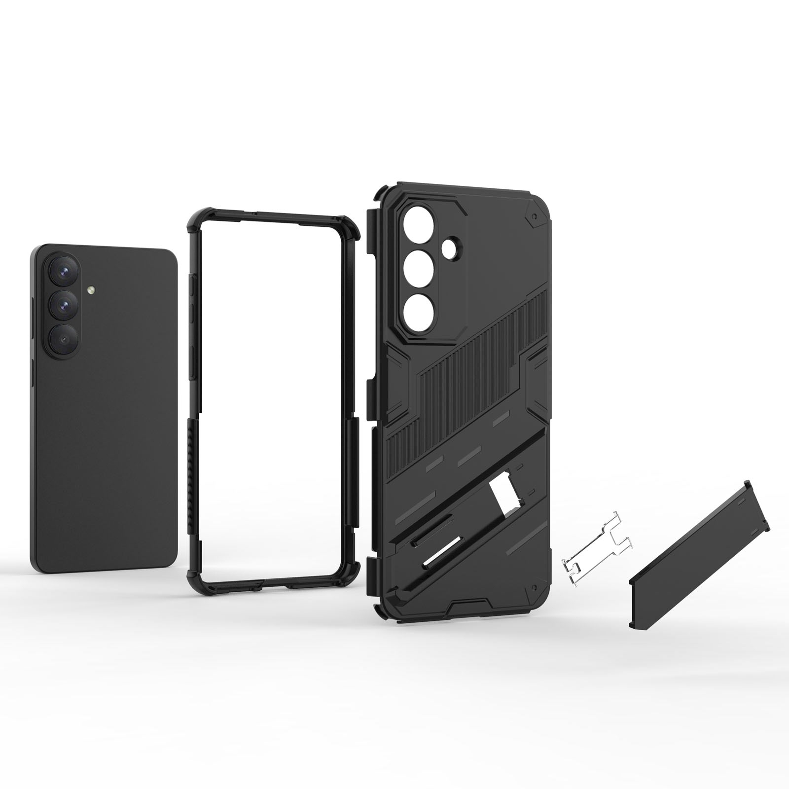 Armor Texture Phone Case with Foldable Hidden Stand for S26 Plus, Black