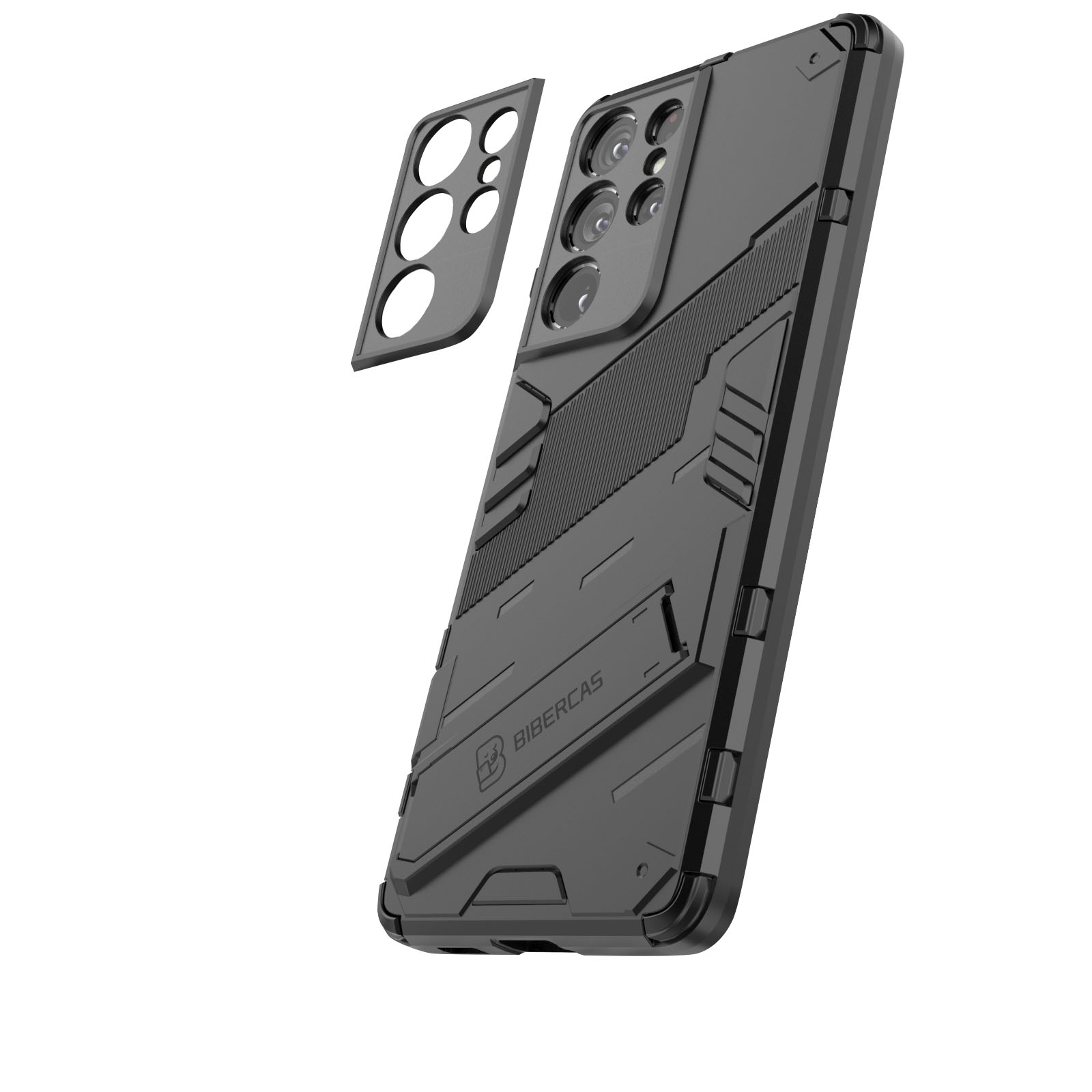 Armor Texture Phone Case with Foldable Hidden Stand for S26 Ultra, Black