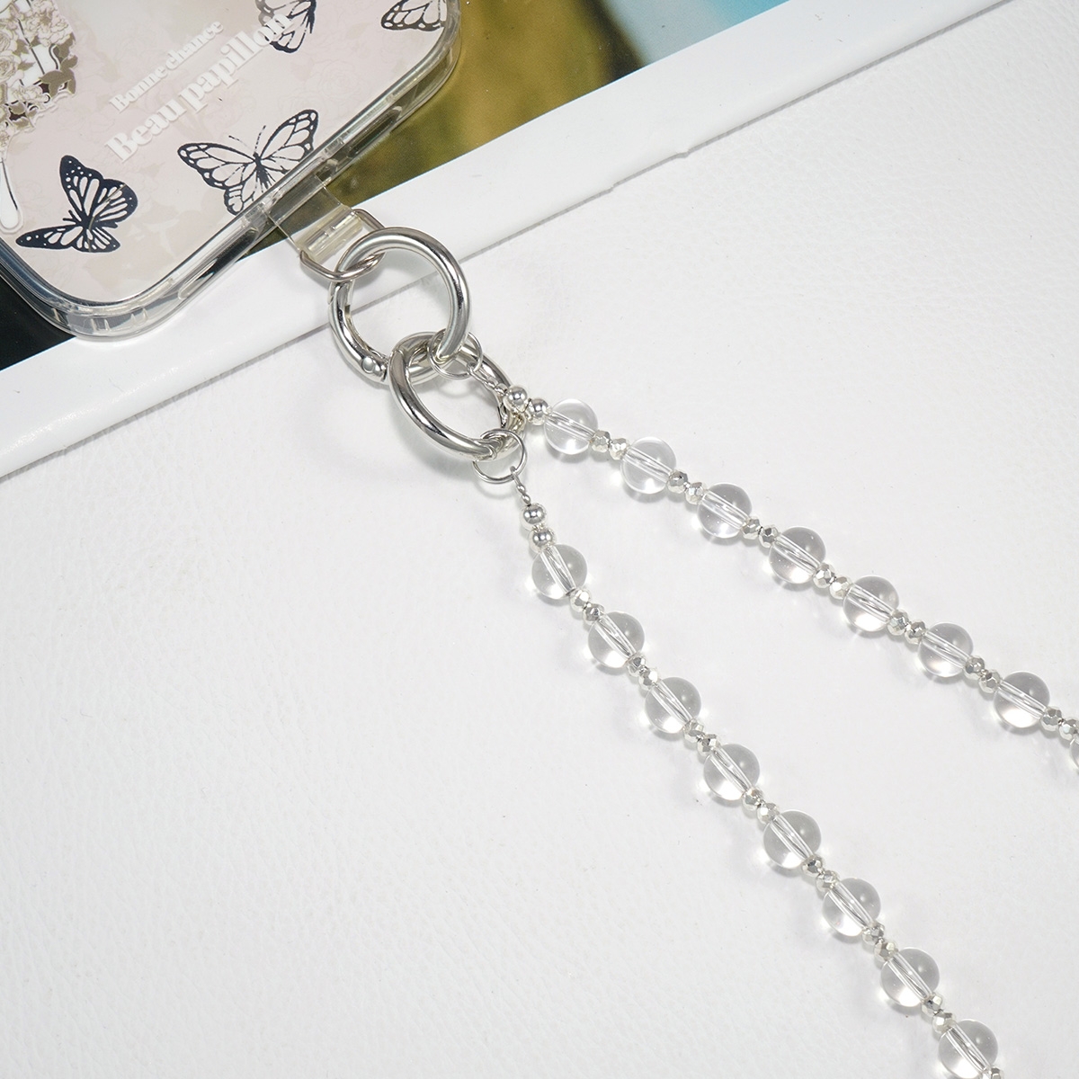 Artificial Crystal Beaded Crossbody Phone Lanyard, White