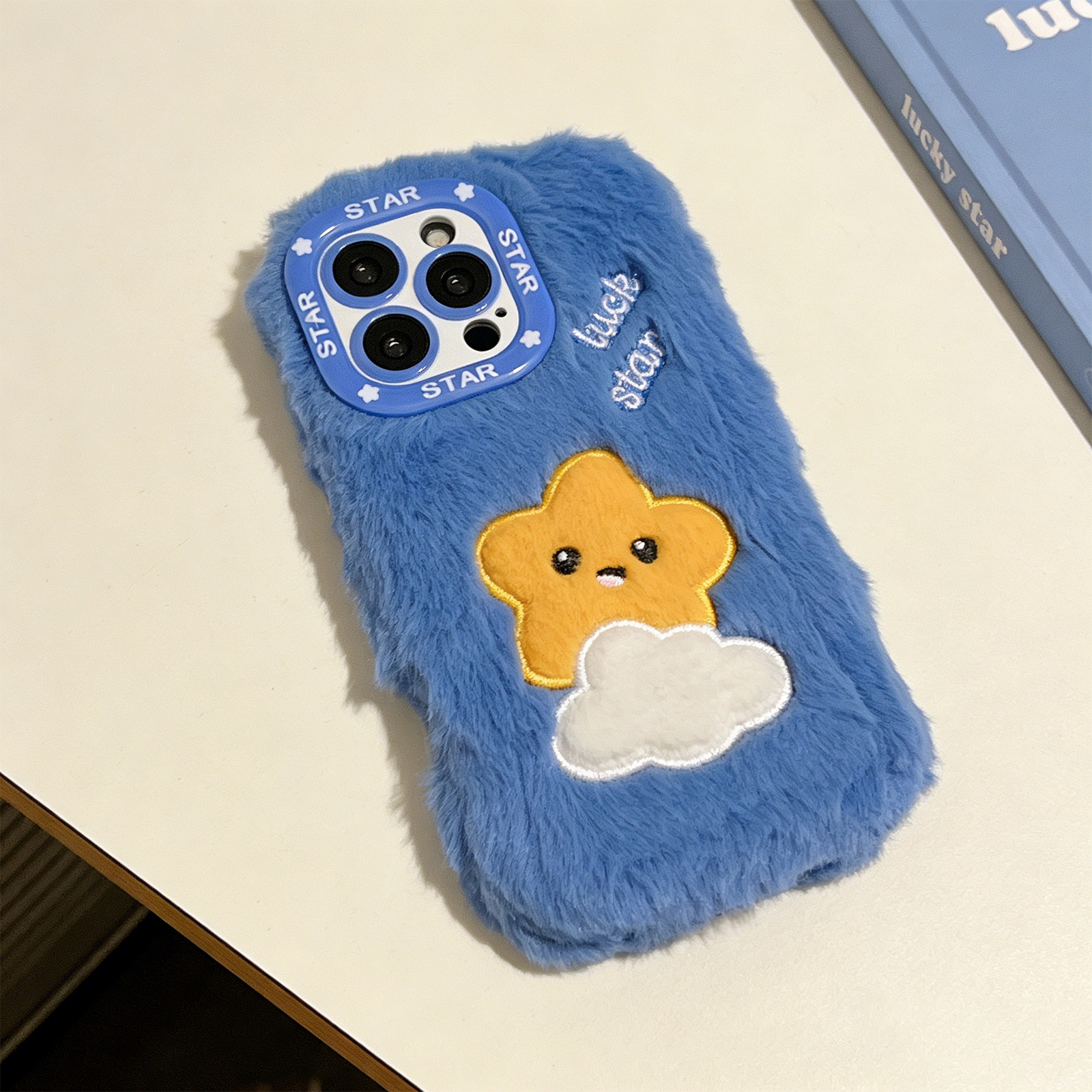 Blue Cloud Star Plush Silicone Phone Case for iPhone 16 Pro – Soft Cute Protective Cover