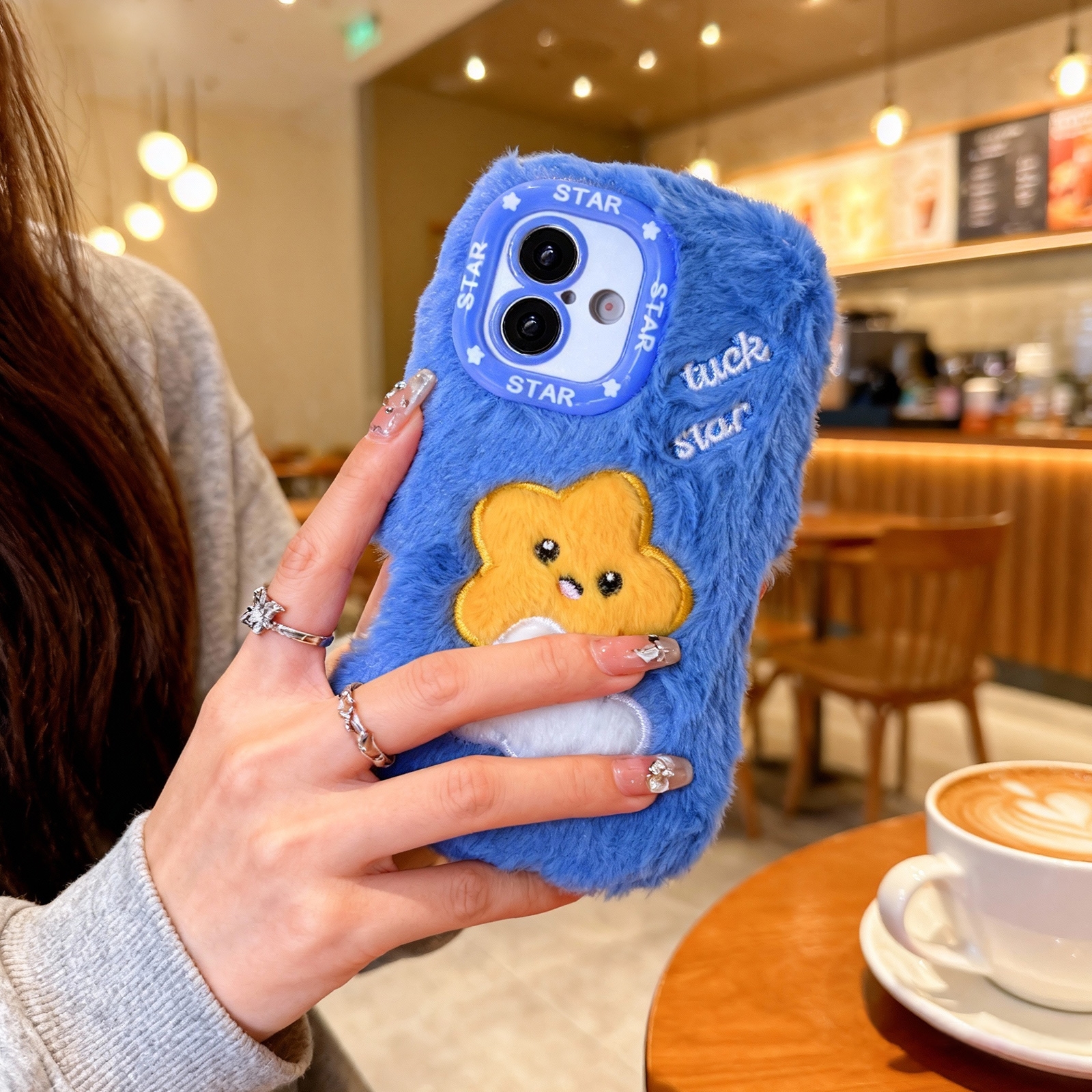 Blue Cloud Star Plush Silicone Phone Case for iPhone 17 – Soft Cute Protective Cover