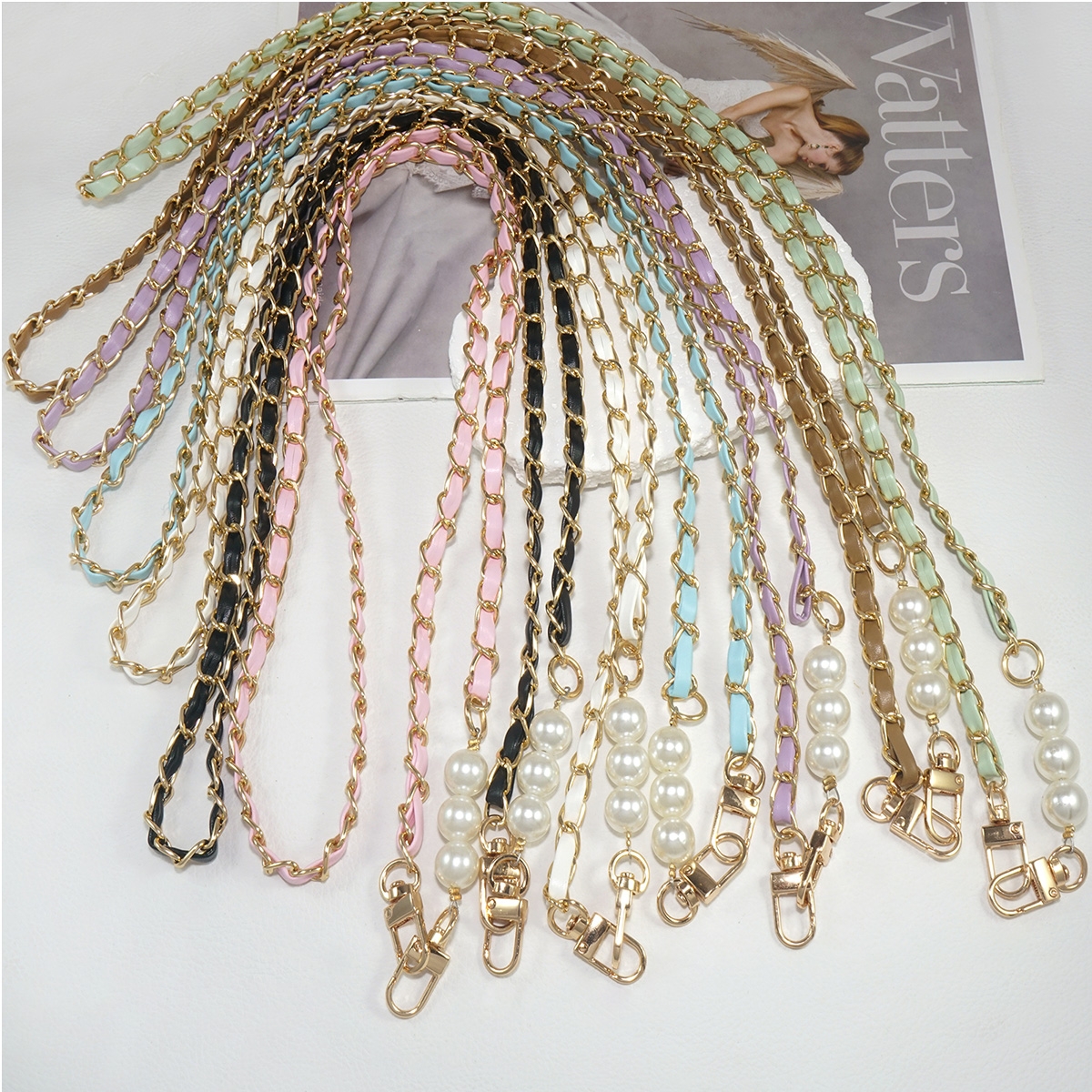 Chic Vegan Leather Woven Chain and Faux Pearl Crossbody Phone Lanyard, Light Blue