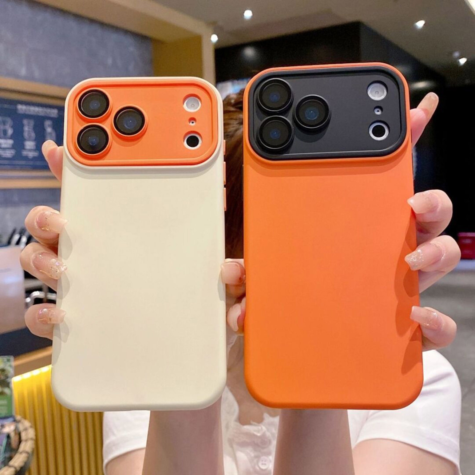 Color Block Silicone Case for iPhone 17 Pro Max - Color Block Lens Protection, Beige