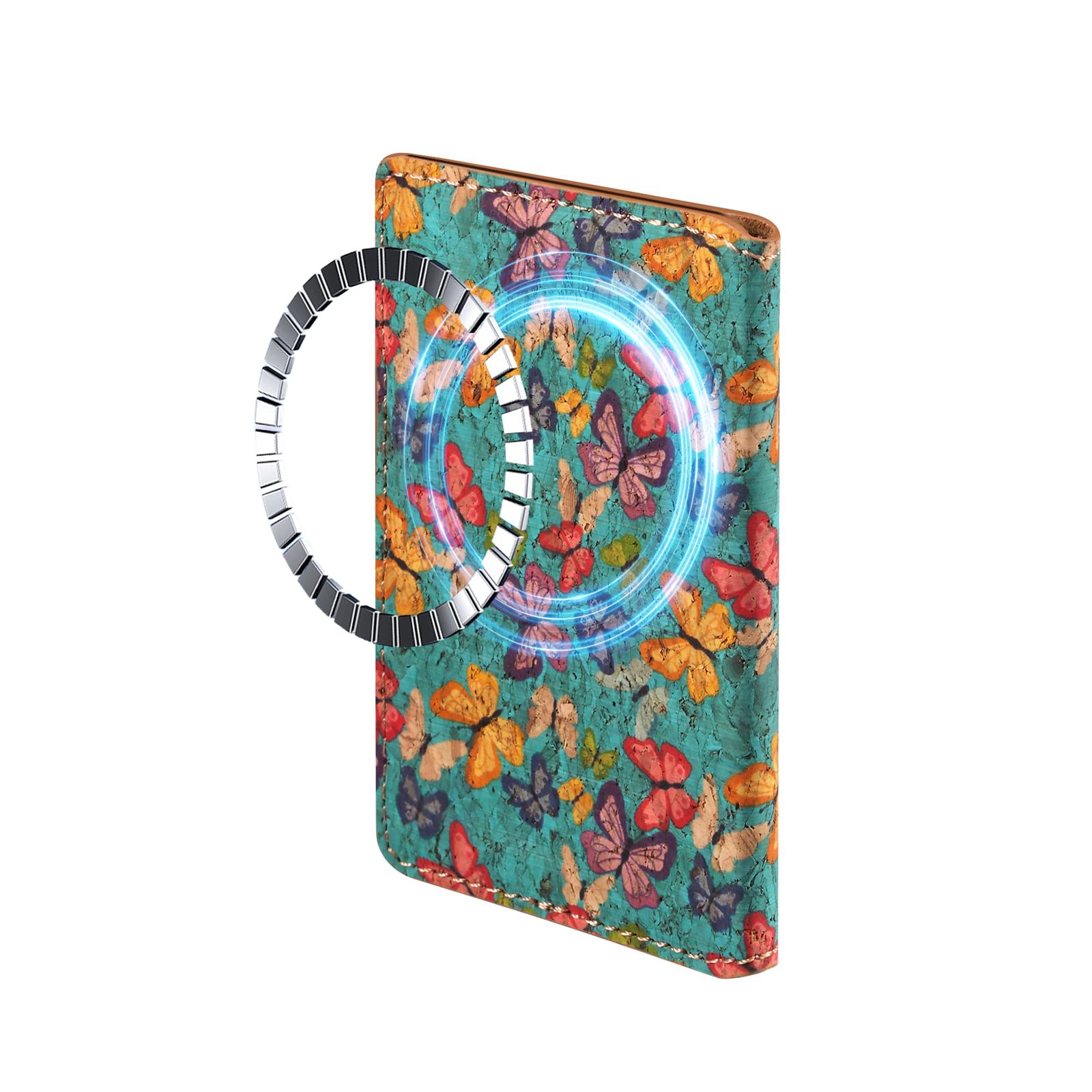 Denior Cork Floral & Butterfly Printed N52 Magnetic RFID Blocking Card Holder | Cork | Holds 3 Cards - Butterfly Blue