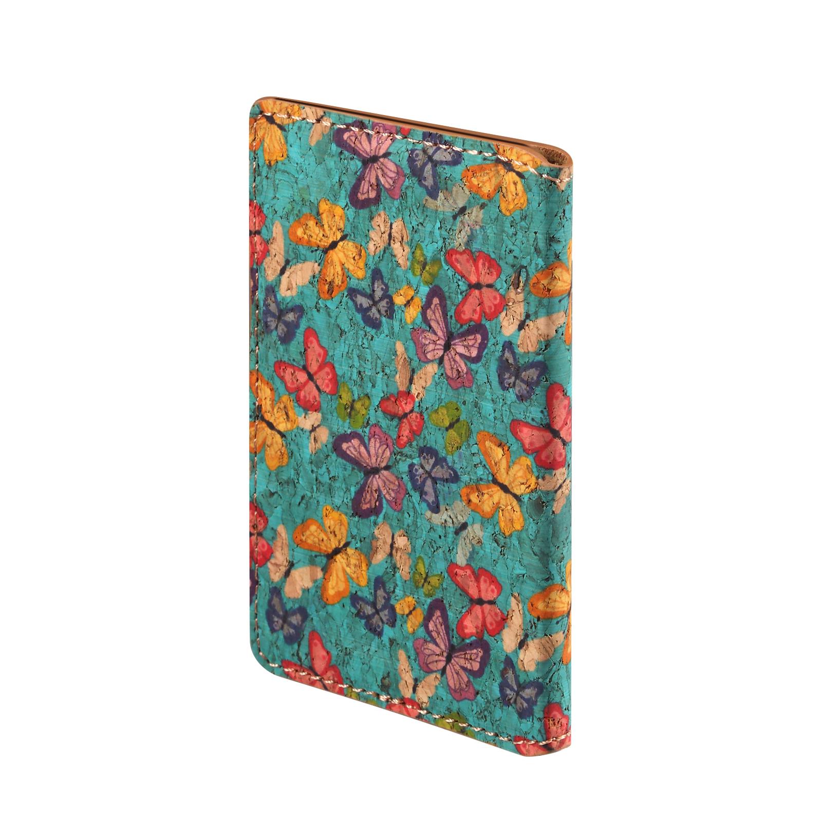 Cork Butterfly Printed N52 Magnetic RFID Blocking Card Holder, Blue