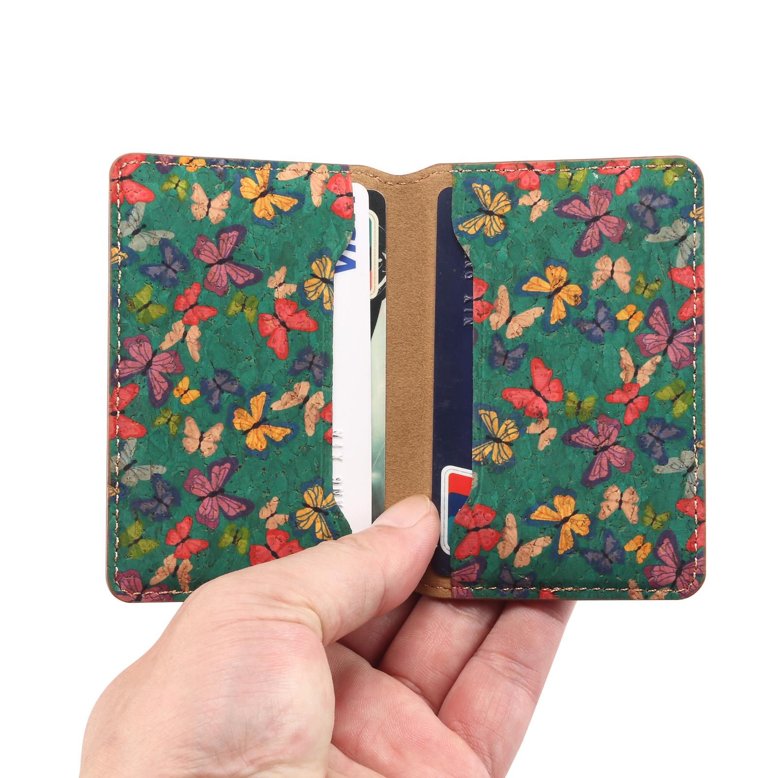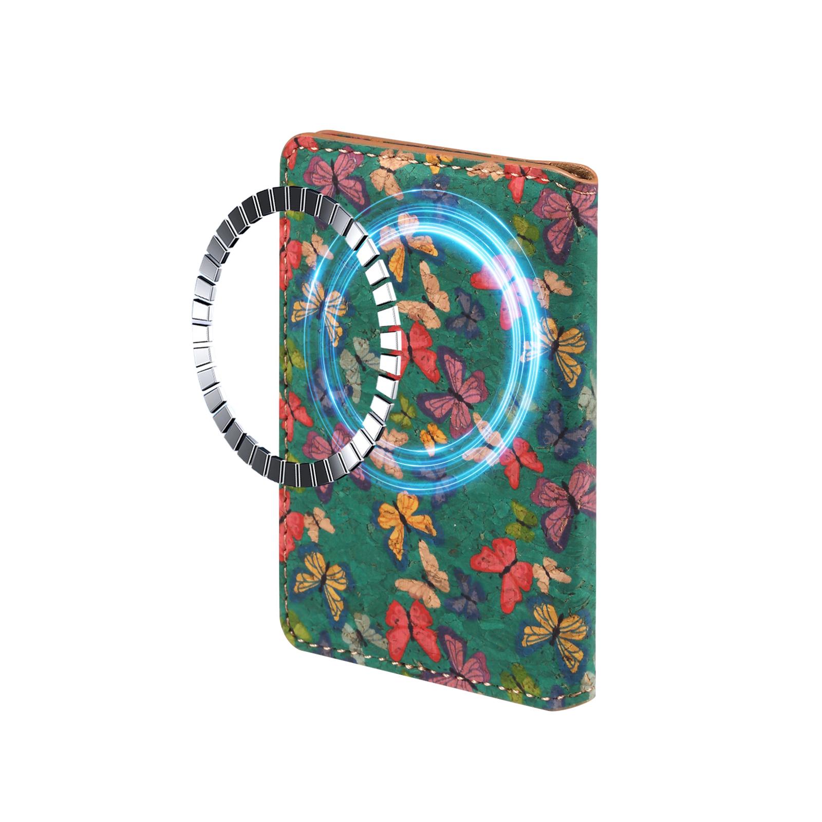 Cork Butterfly Printed N52 Magnetic RFID Blocking Card Holder, Green