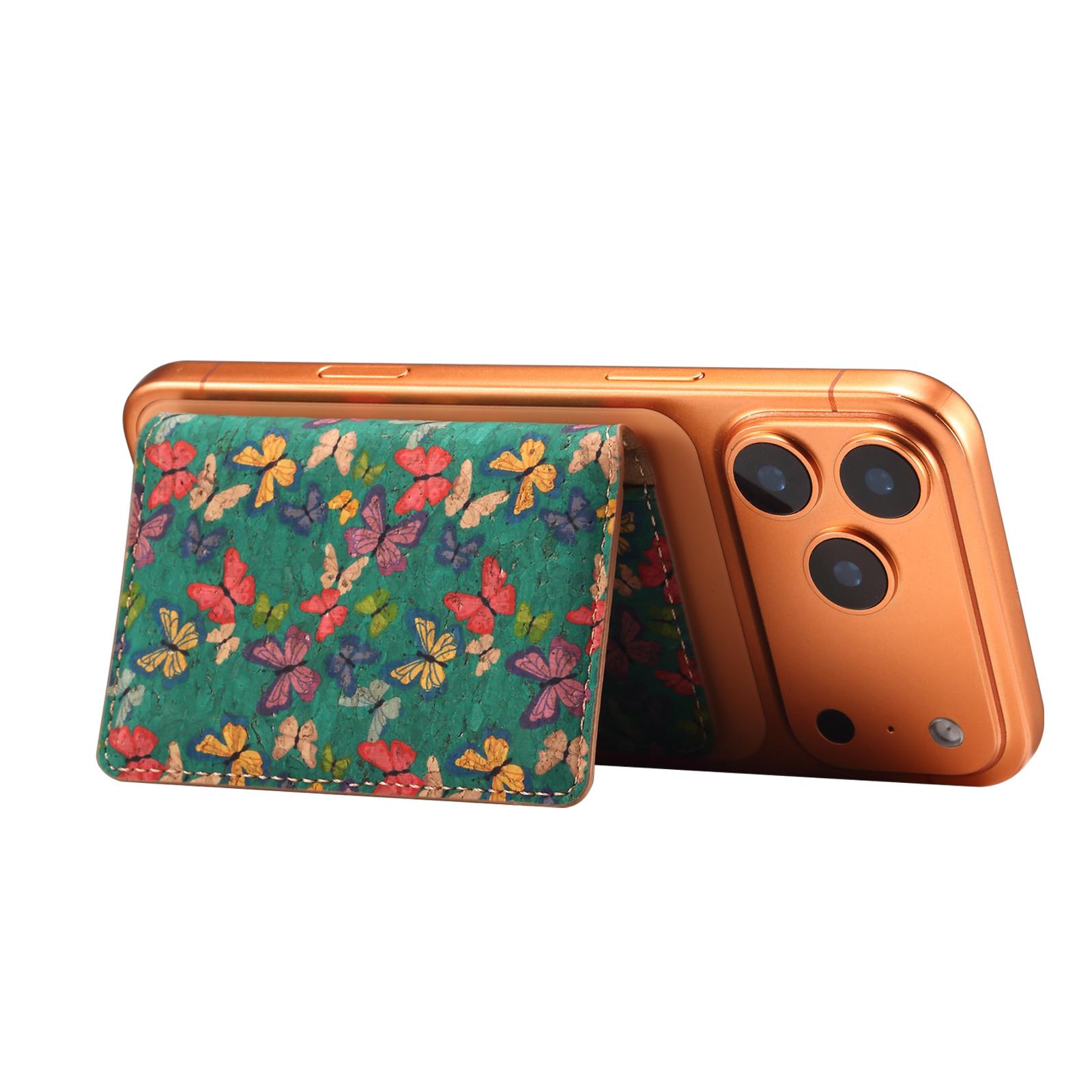 Denior Cork Floral & Butterfly Printed N52 Magnetic RFID Blocking Card Holder | Cork | Holds 3 Cards - Butterfly Green