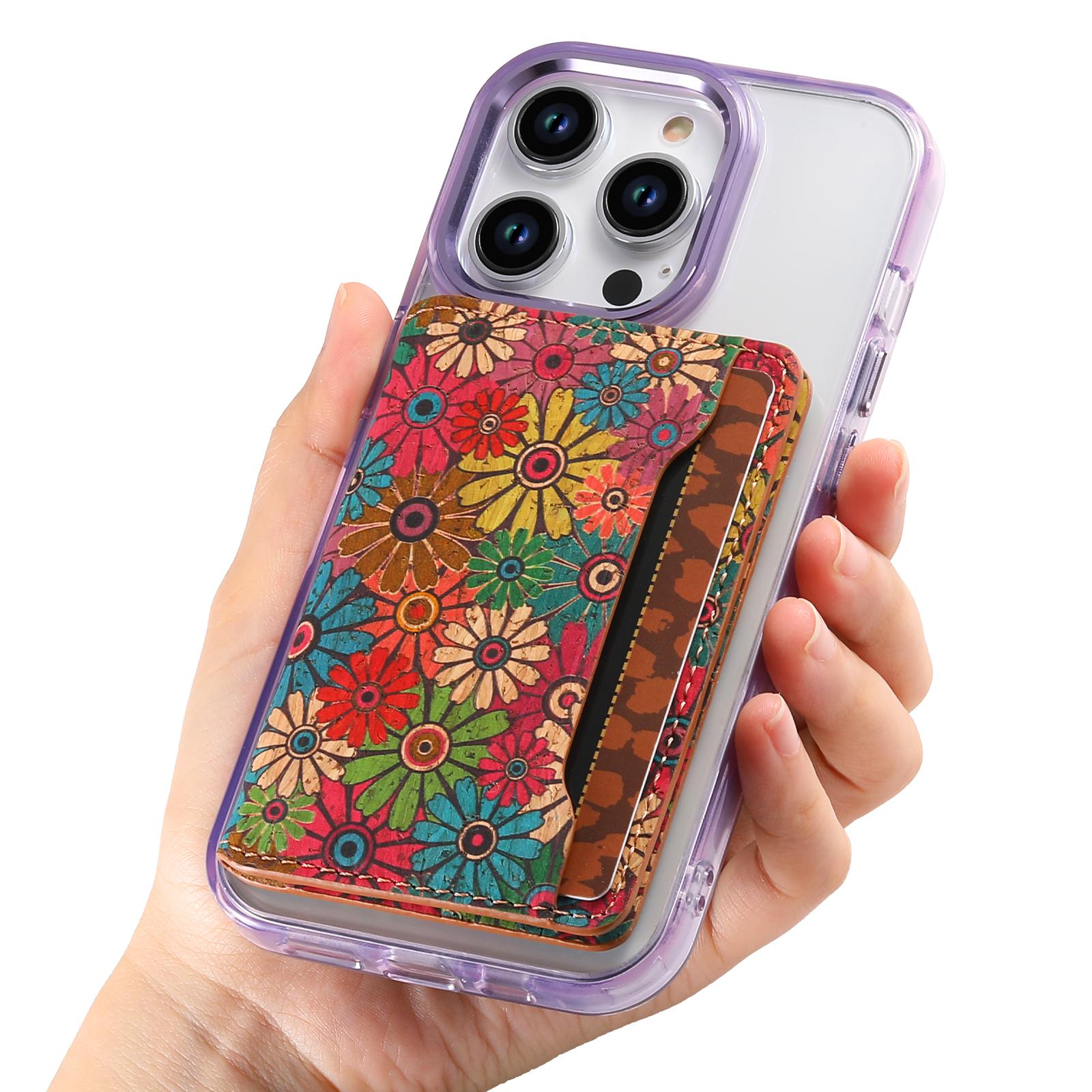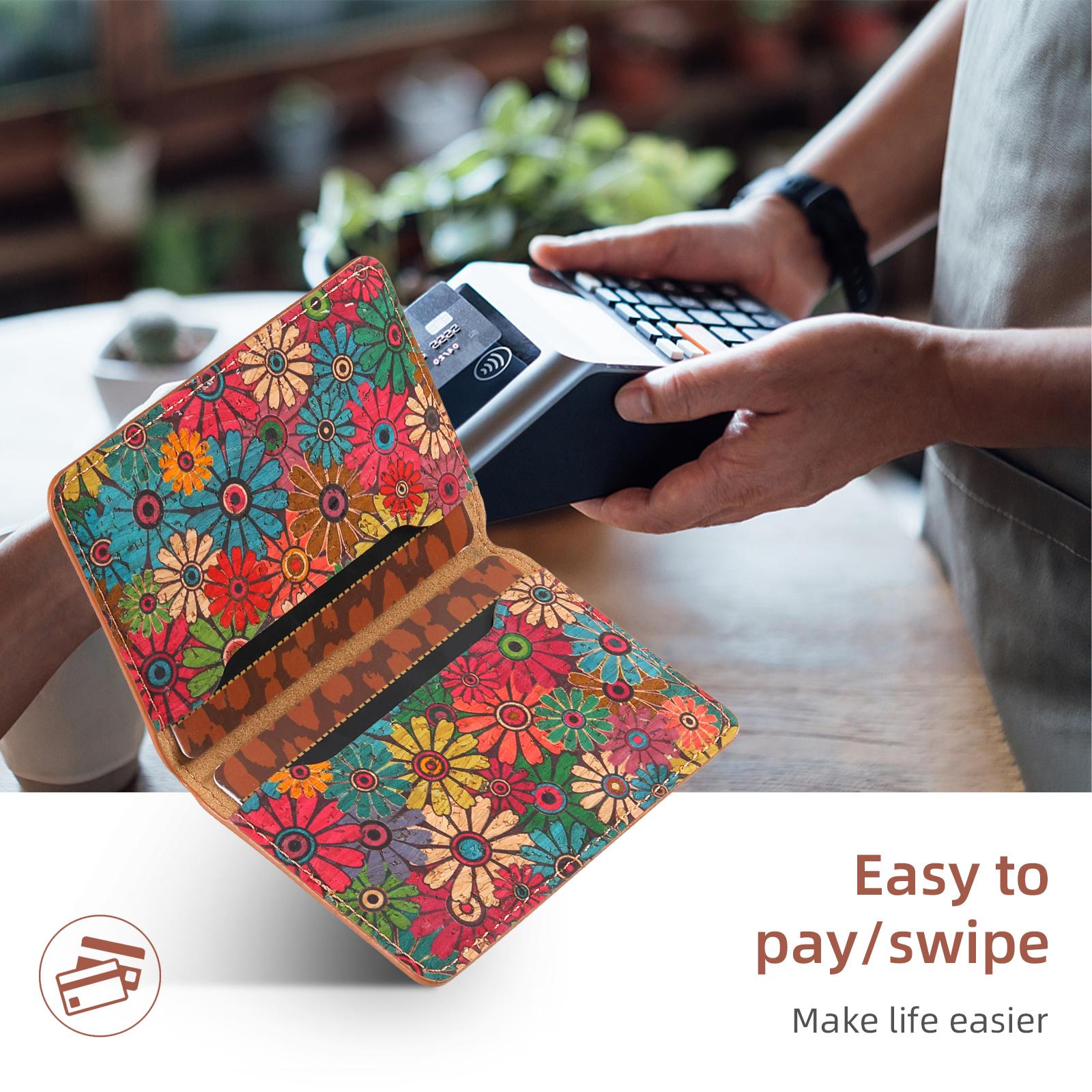 Cork Floral Printed N52 Magnetic Card Holder, Green