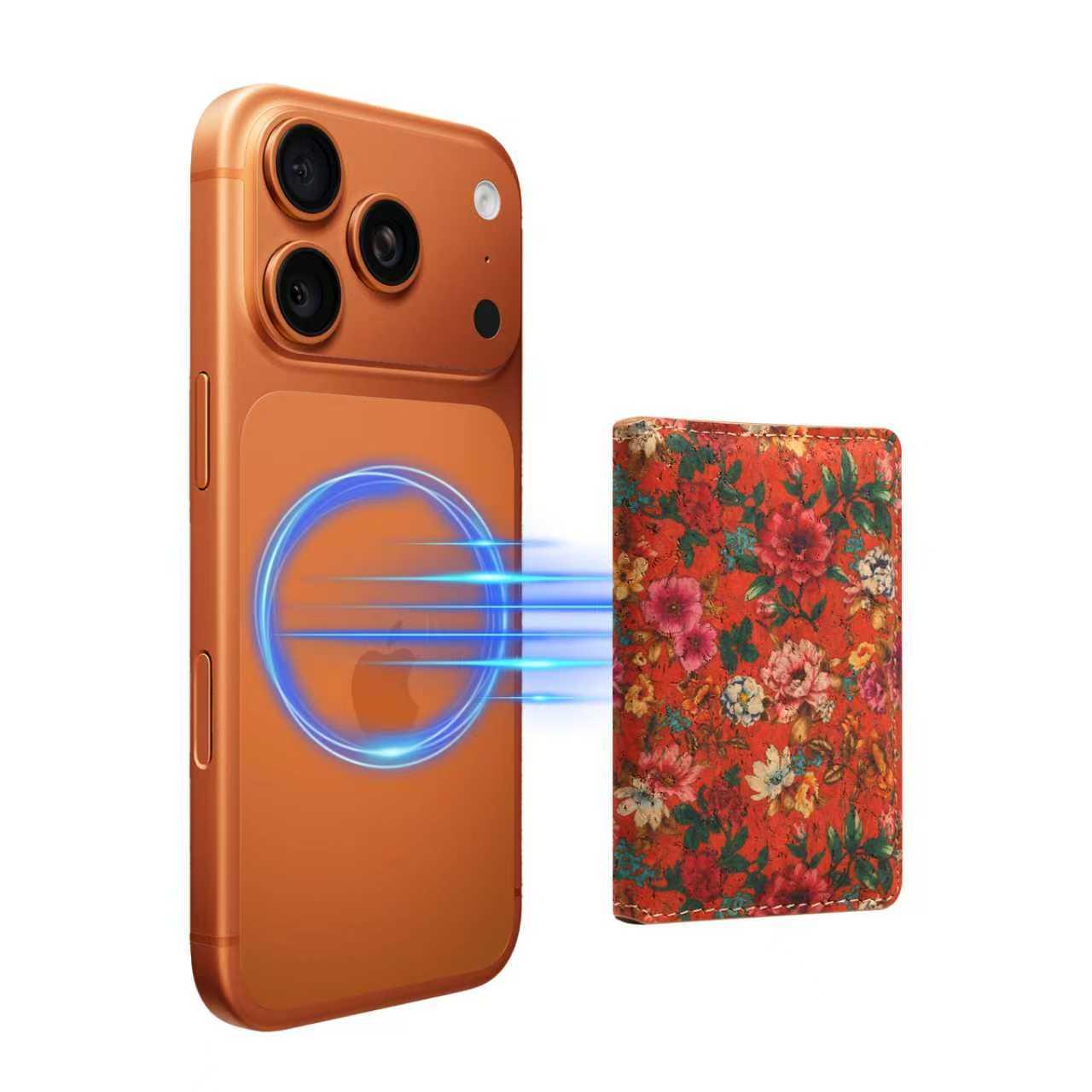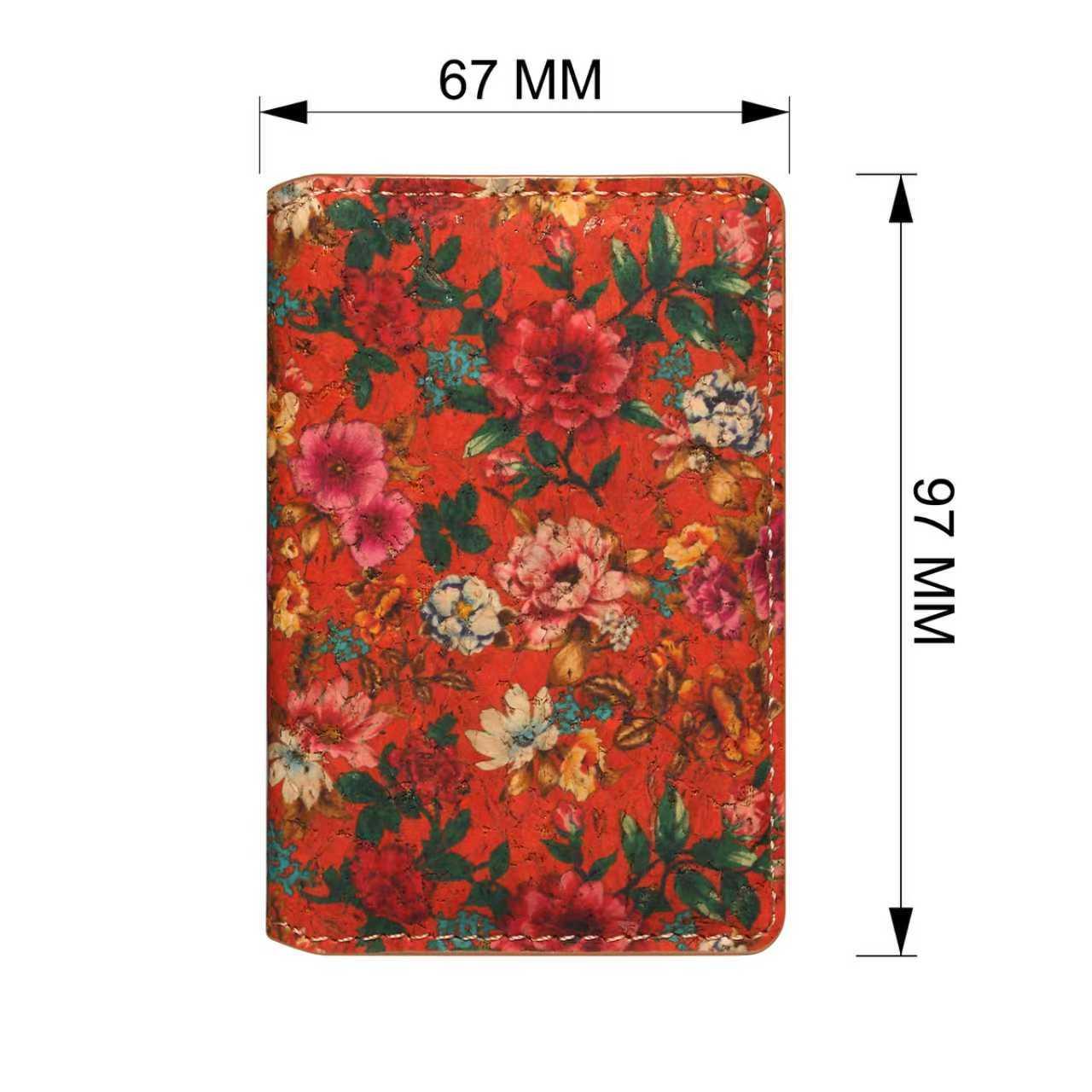 Cork Floral Printed N52 Magnetic RFID Blocking Card Holder, Red
