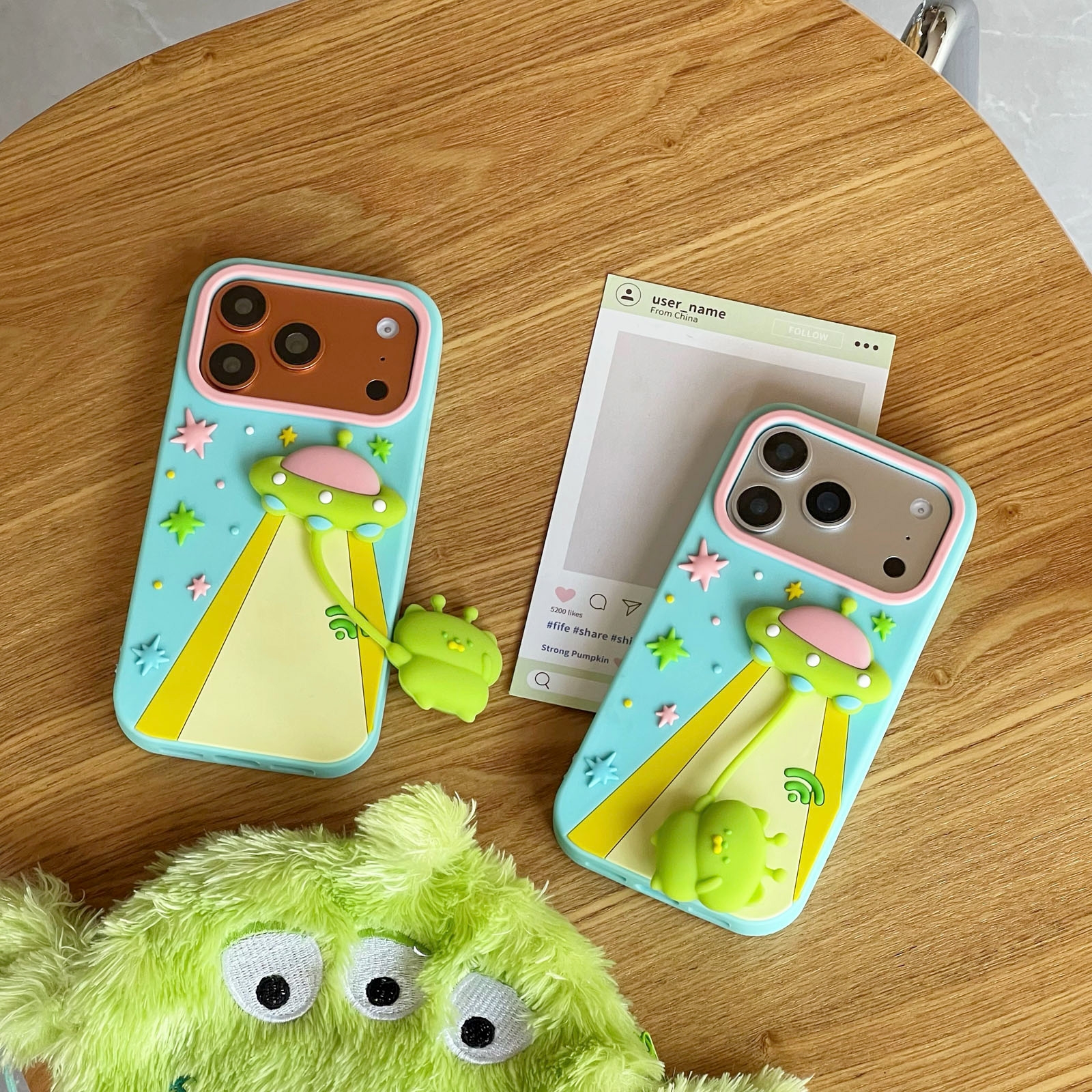 Cute 3D Alien UFO Space Silicone Case for iPhone 17 Pro, Blue