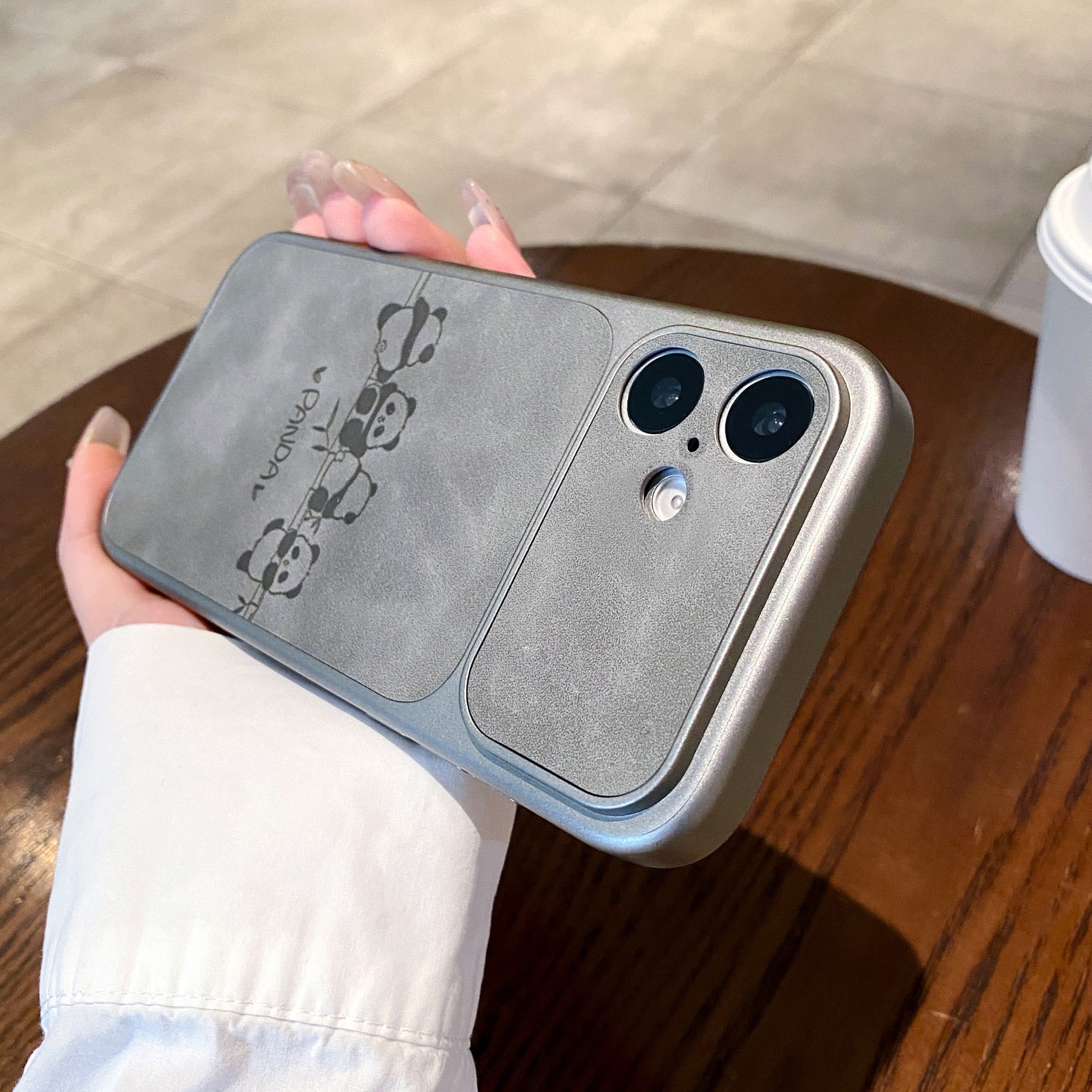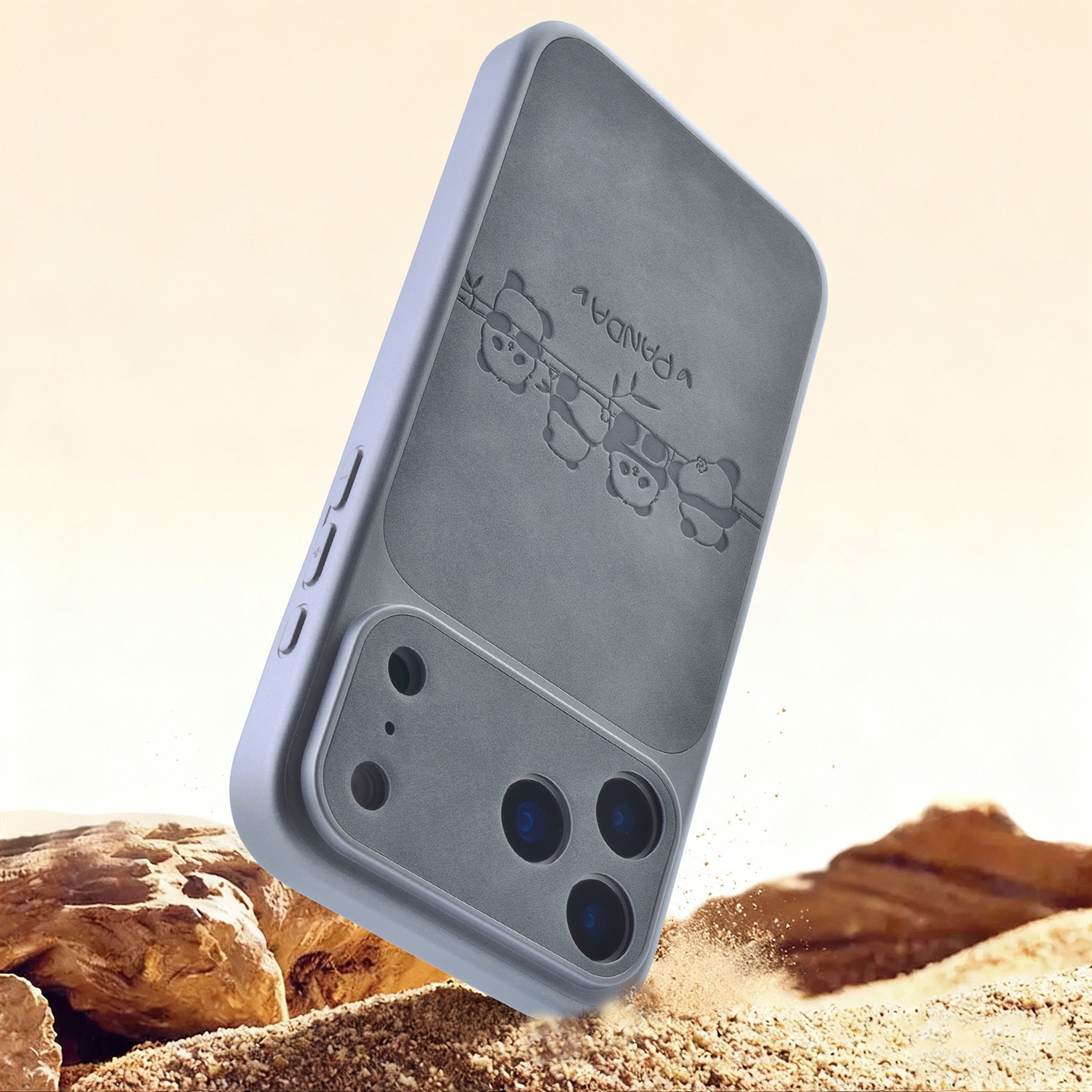 Cute Panda Leather Pattern Back iPhone 17 Case - TPU Shockproof Phone Cover, Gray
