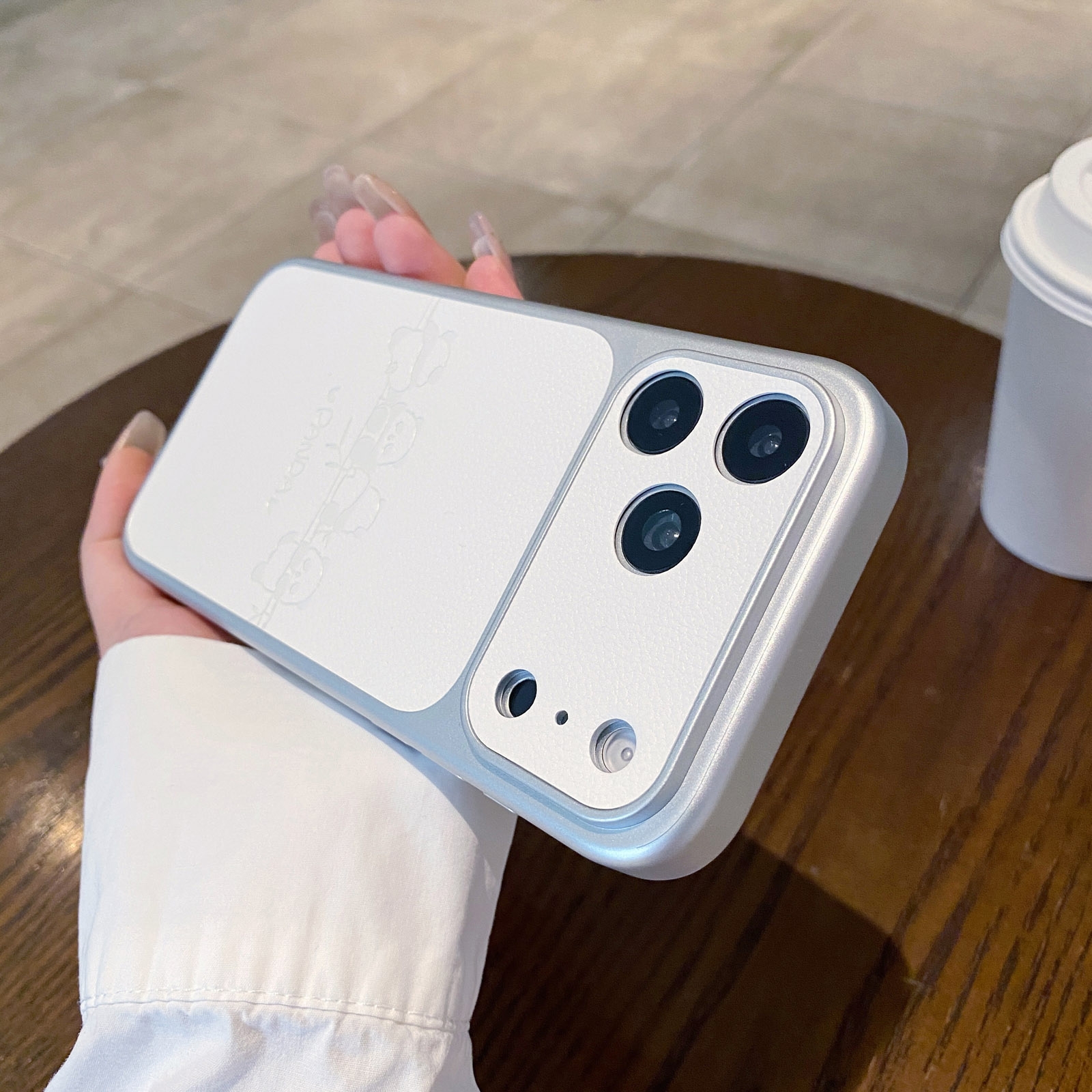 Cute Panda Leather Pattern Back iPhone 17 Pro Case - TPU Shockproof Phone Cover, White