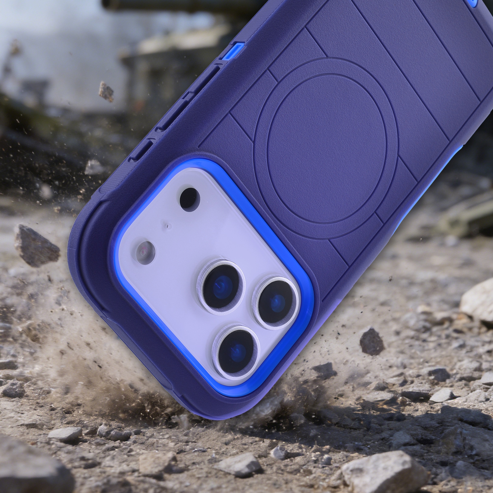 Durable Striped Texture Phone Case for iPhone 17 Pro, Dark Blue