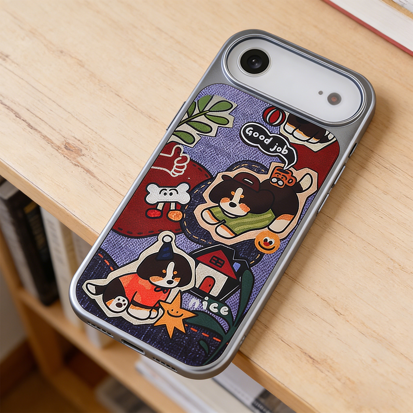 Electroplated Magnetic Graffiti Dog Phone Case for iPhone Air - Cute Cartoon Puppy Print Cover
