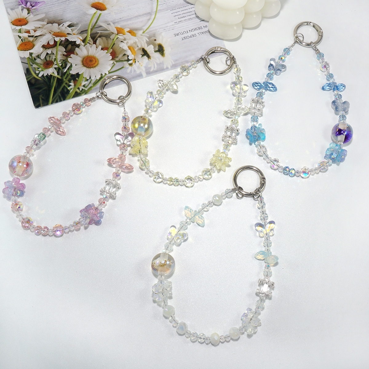 Elegant Butterfly Flower Artificial Crystal Phone Wrist Strap, Blue