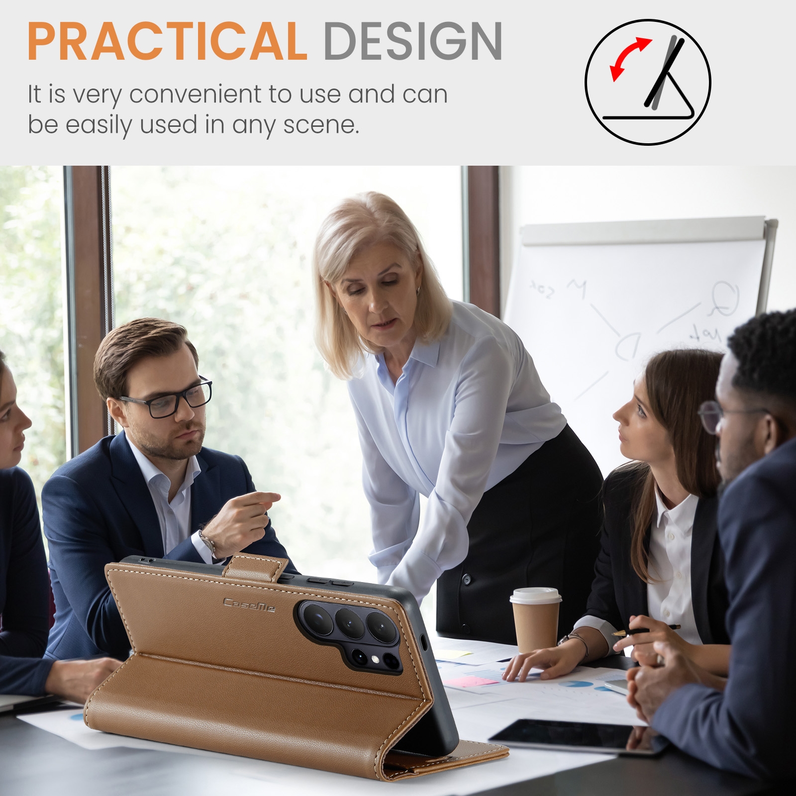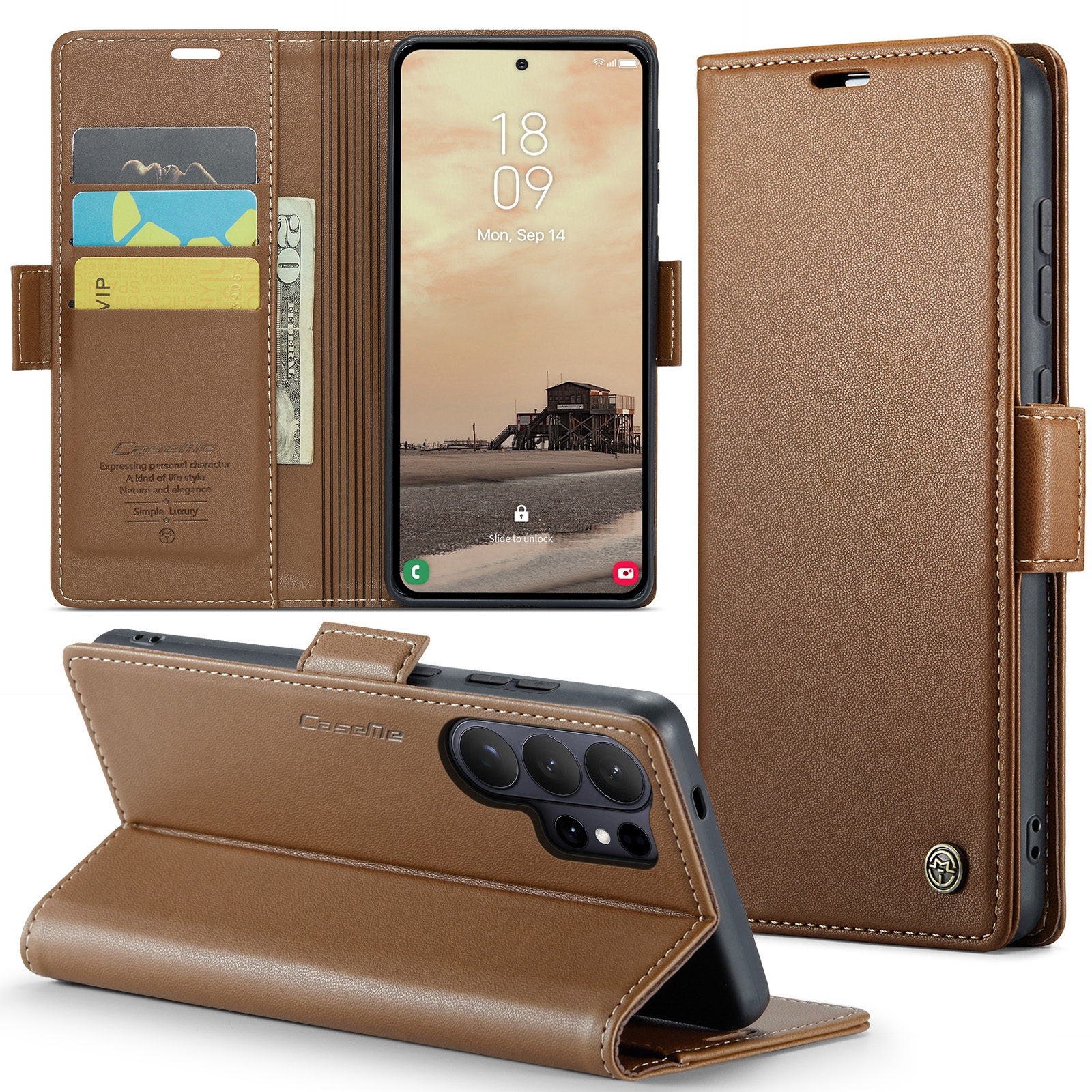 Flip Phone Case for S26 Ultra with Butterfly Buckle - RFID Blocking Anti, Brown