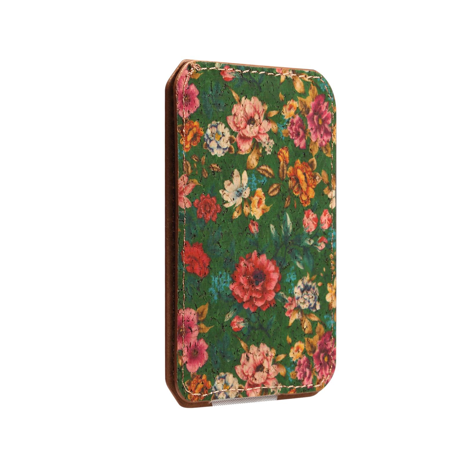 Denior Floral & Butterfly Printed RFID Blocking Magnetic Card Holder | Cork | Holds 2 Cards - Peony Green