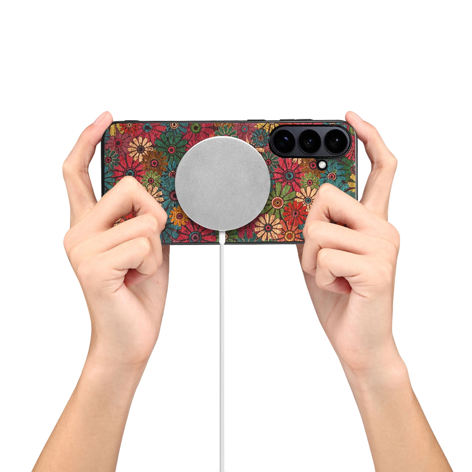 Flower Series Phone Case and Card Holder Set for S26, Green
