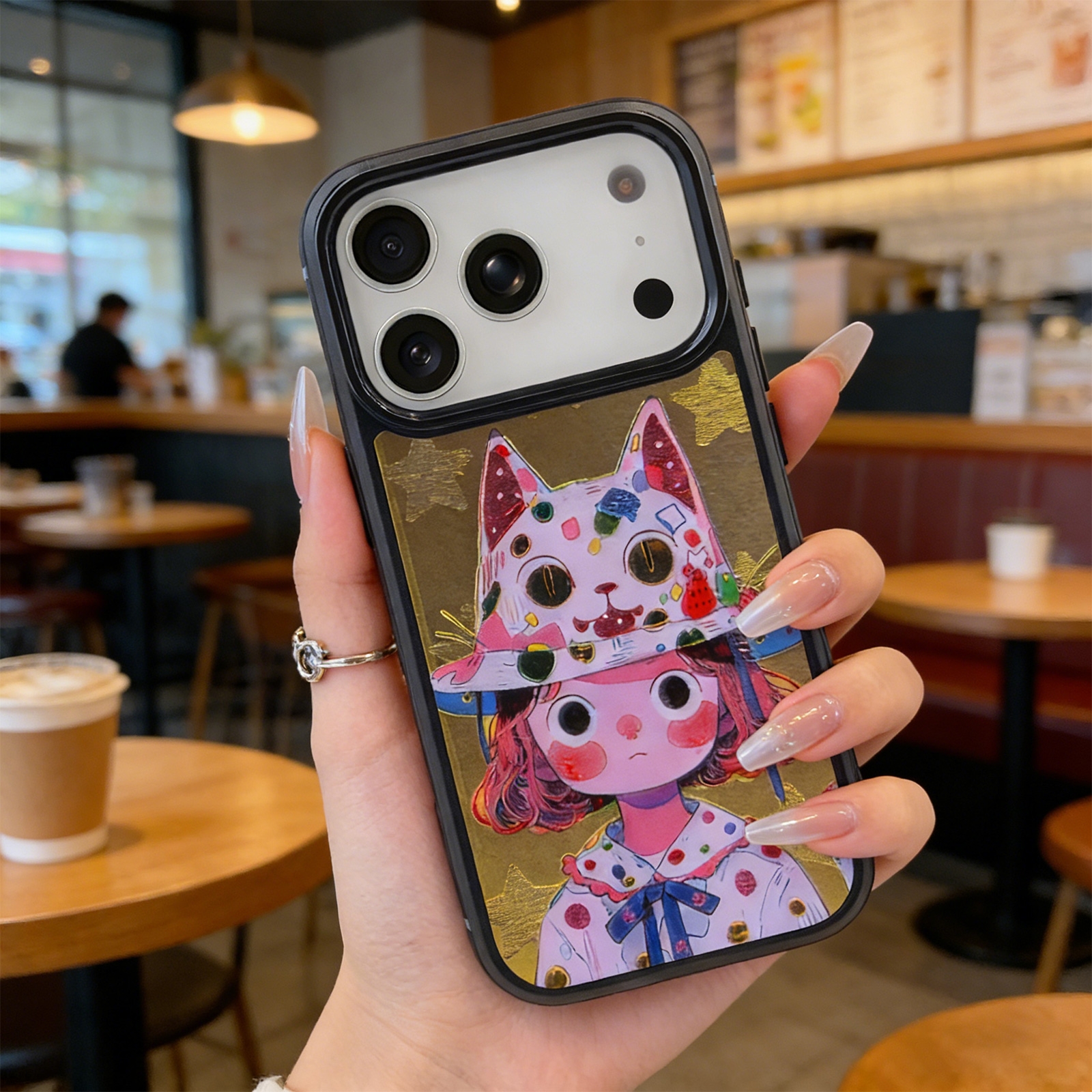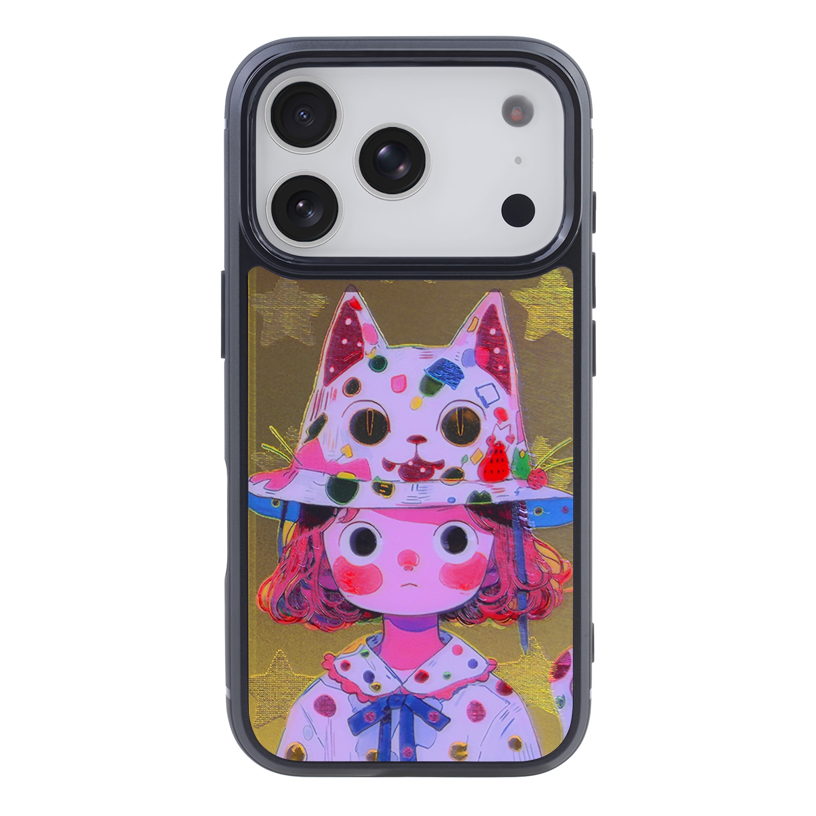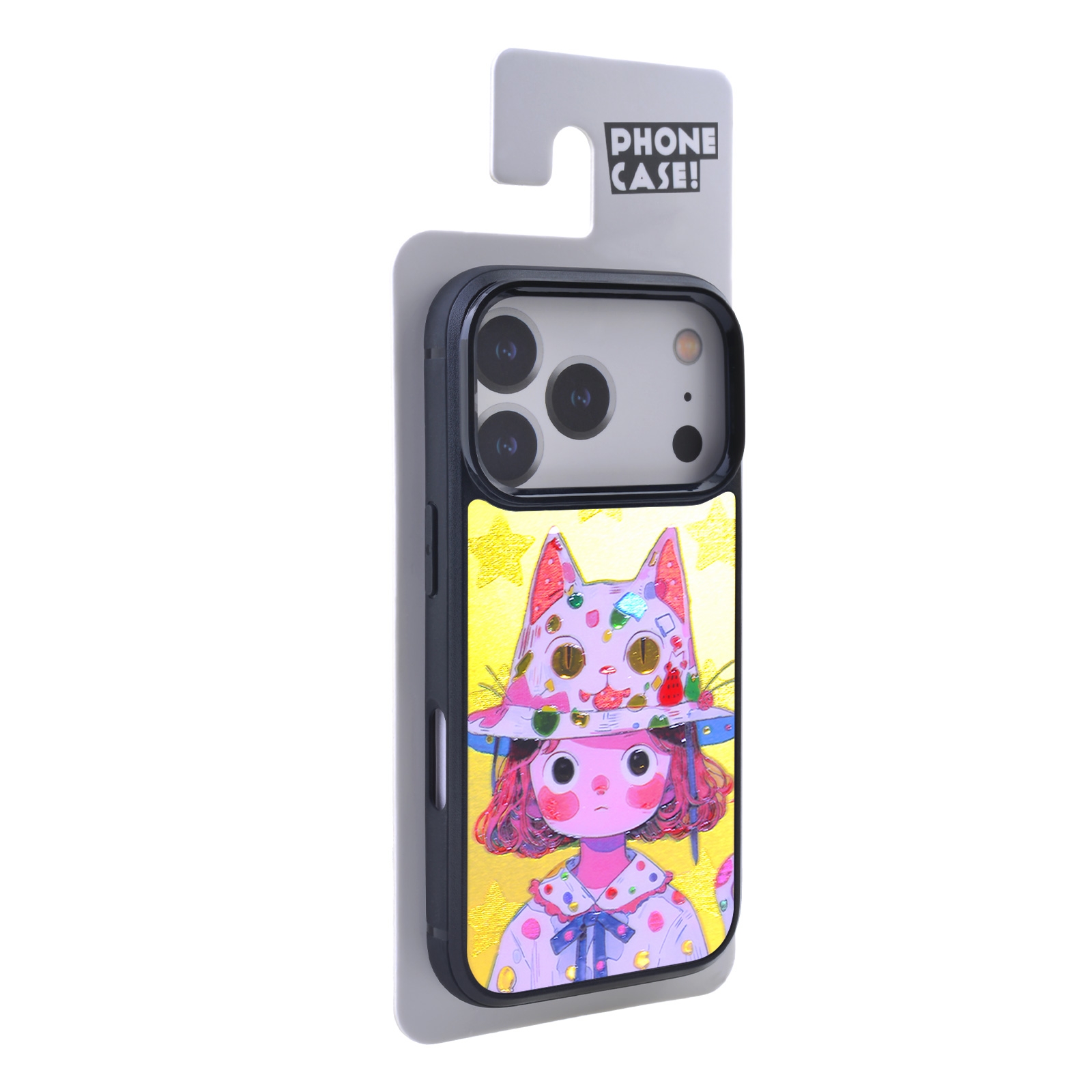 Girl with Cat Hat Phone Case for iPhone 17 Pro - Whimsical Art Print Protective Cover, Yellow