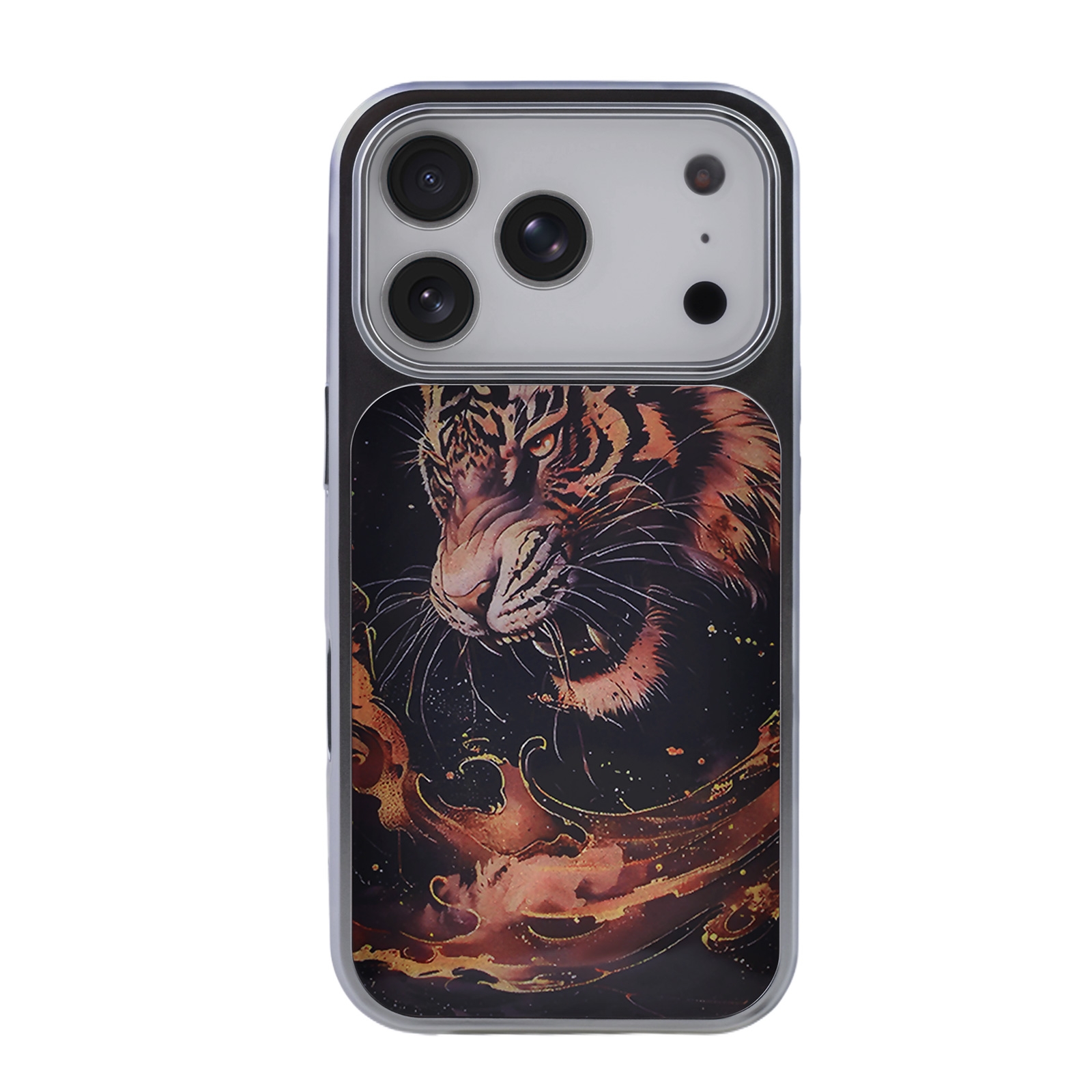 Golden Tiger Phone Case for iPhone 17 Pro Max - Marbled Ink Art Print, Brown