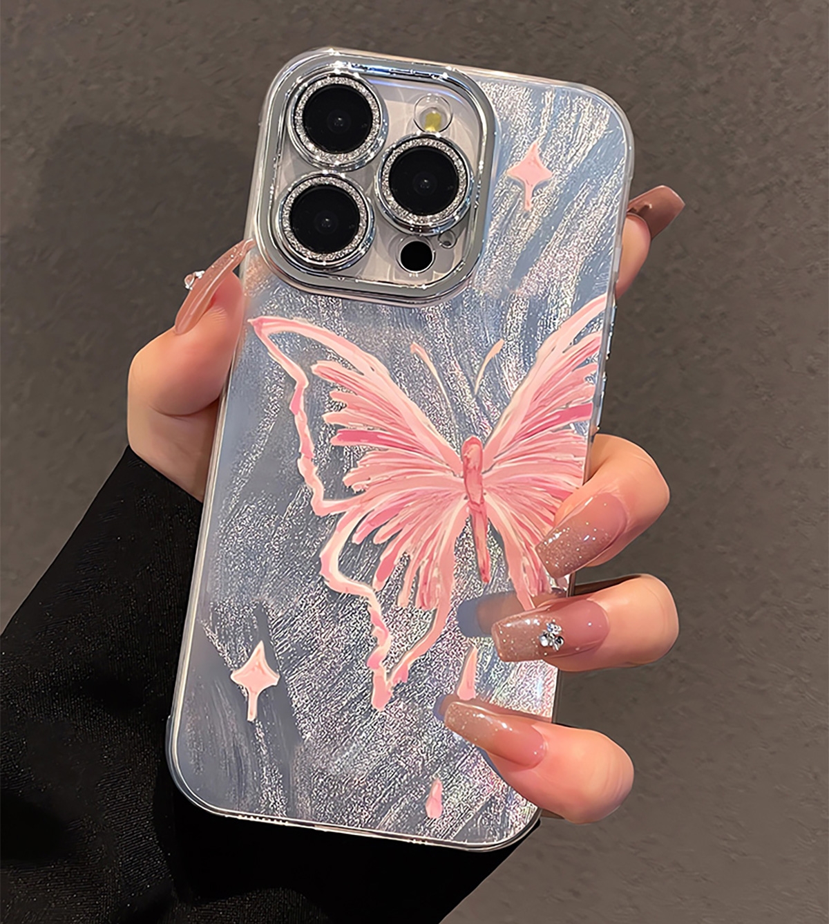 Compact Case for iPhone 16 Pink Butterfly Design, Cute Soft Slim TPU Shockproof Protective Phone Cases Cover for Women Aesthetic