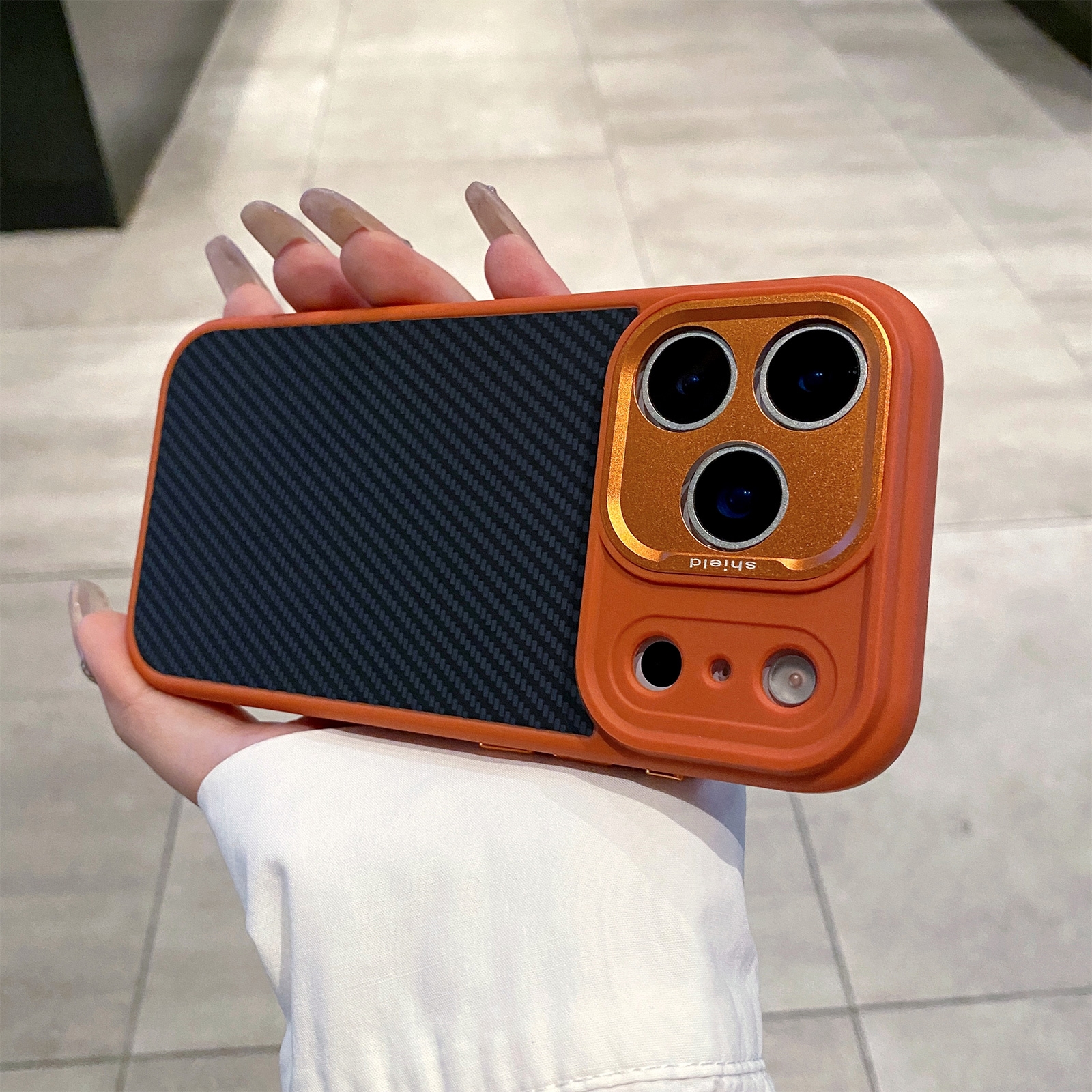 Orange Carbon Fiber Magnetic Case for iPhone 17