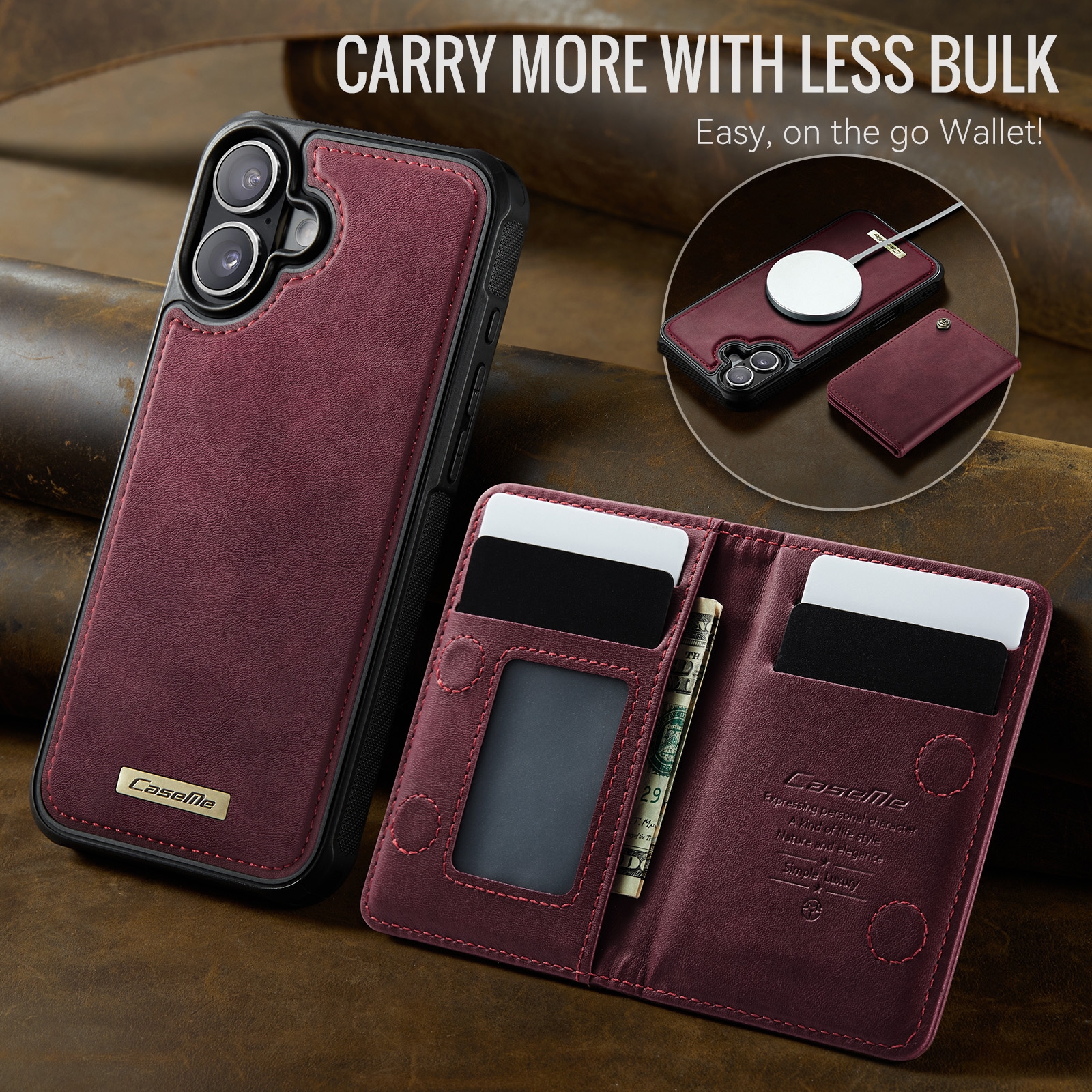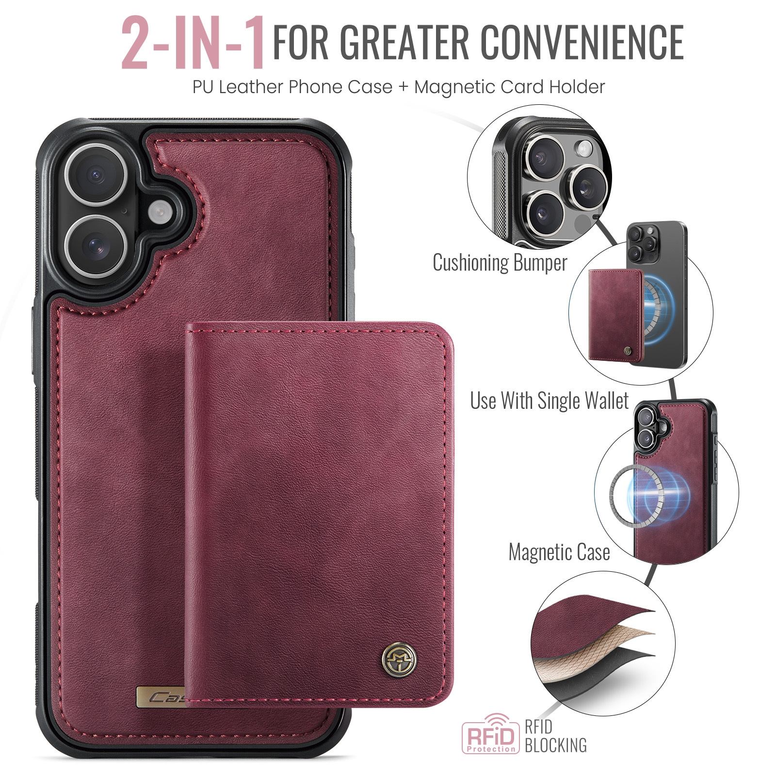 iPhone 17 Magnetic Case with Card Holders, Red