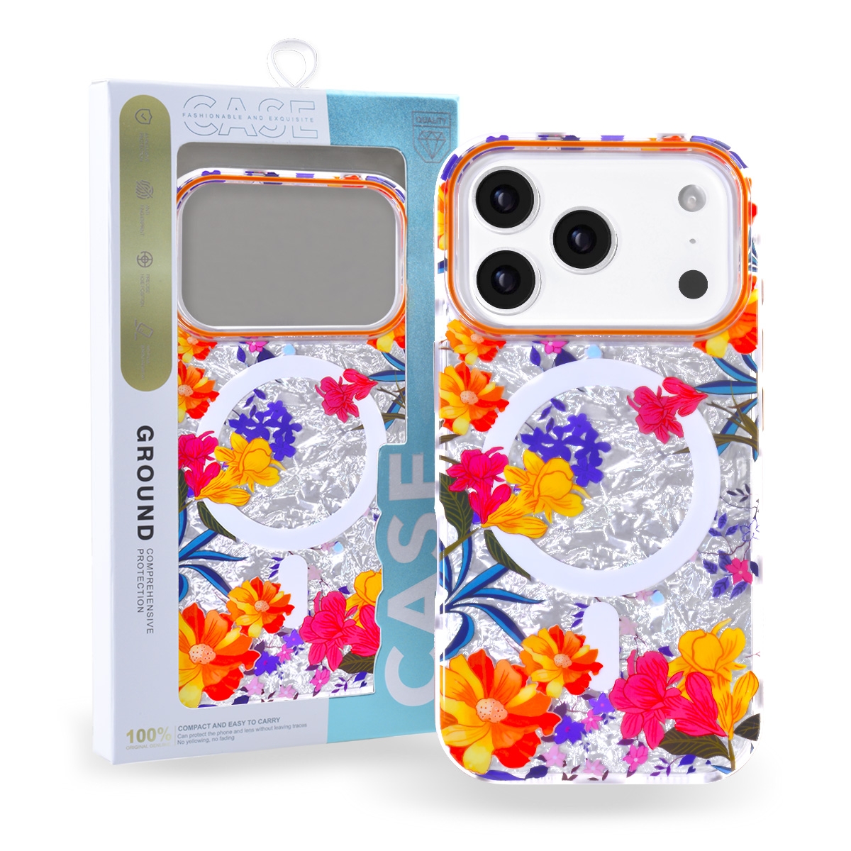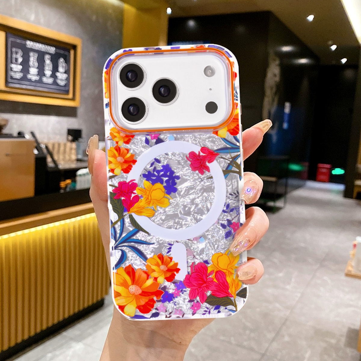 Floral MagSafe Case for iPhone 17 Pro – Orange Magnetic Flower Cover