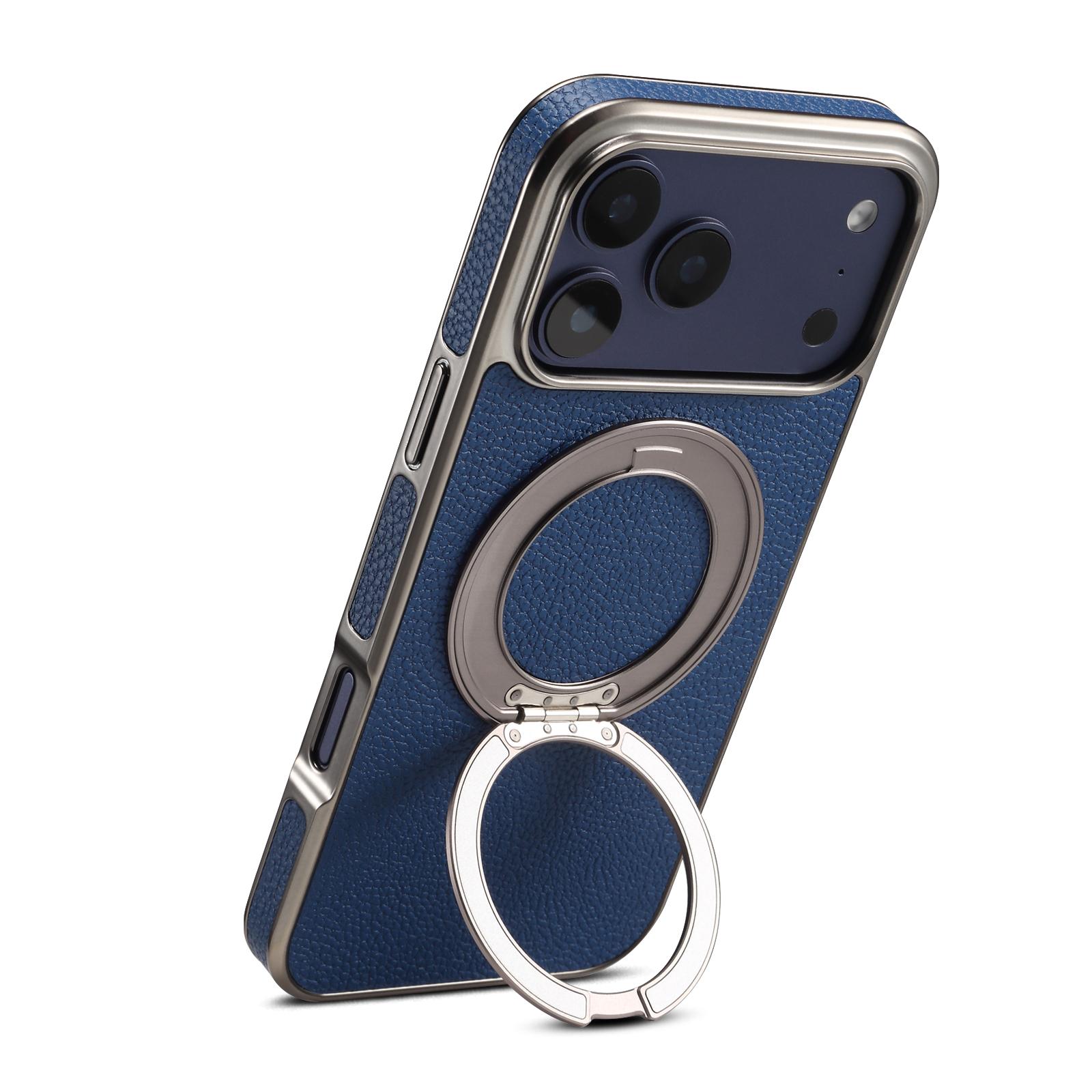 360 Rotation Kickstand Magnetic iPhone 17 Pro Case - Airbag Shockproof, Blue