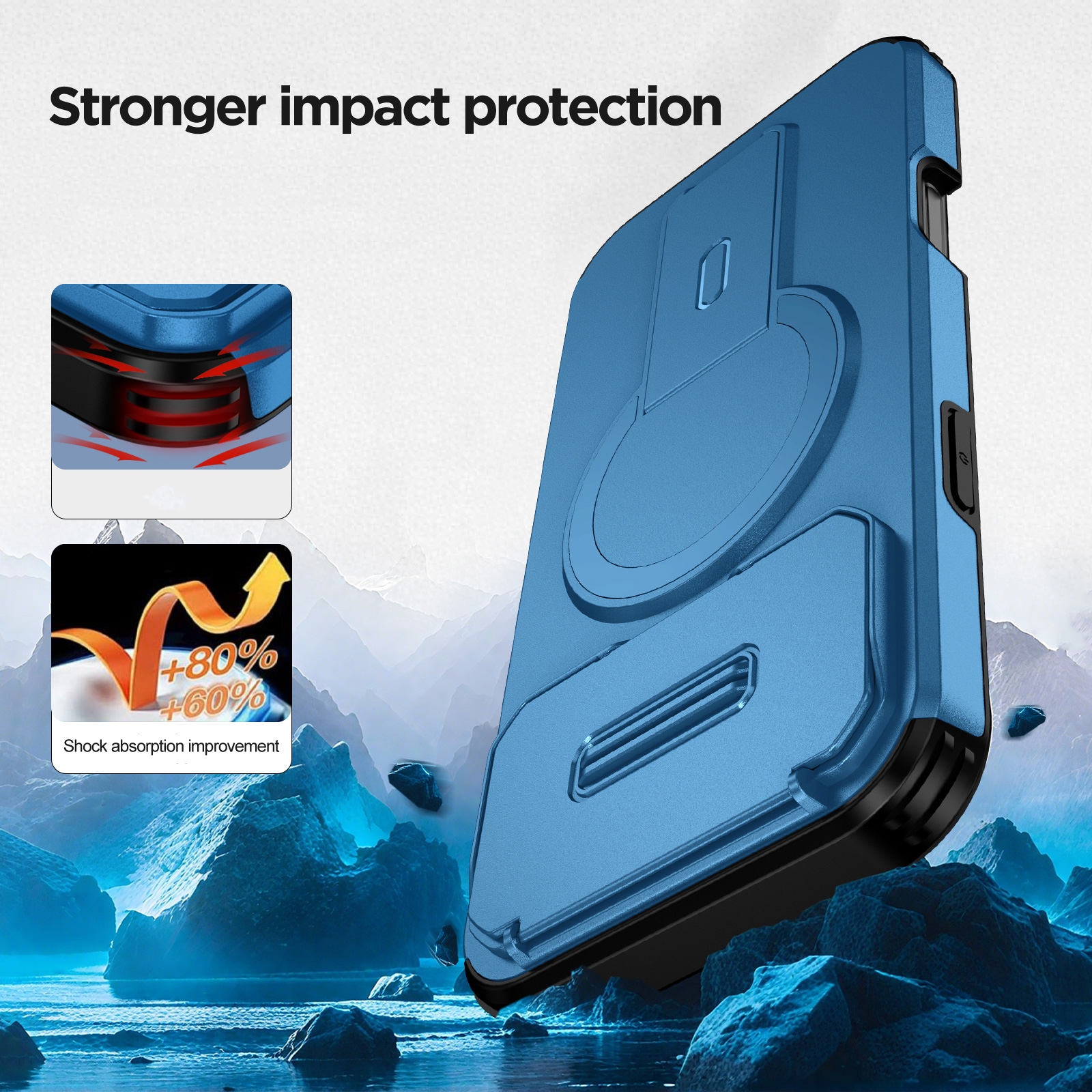 360 Rotation Kickstand Magnetic iPhone 17 Pro Max Case - Airbag Shockproof Metal Stand, Blue