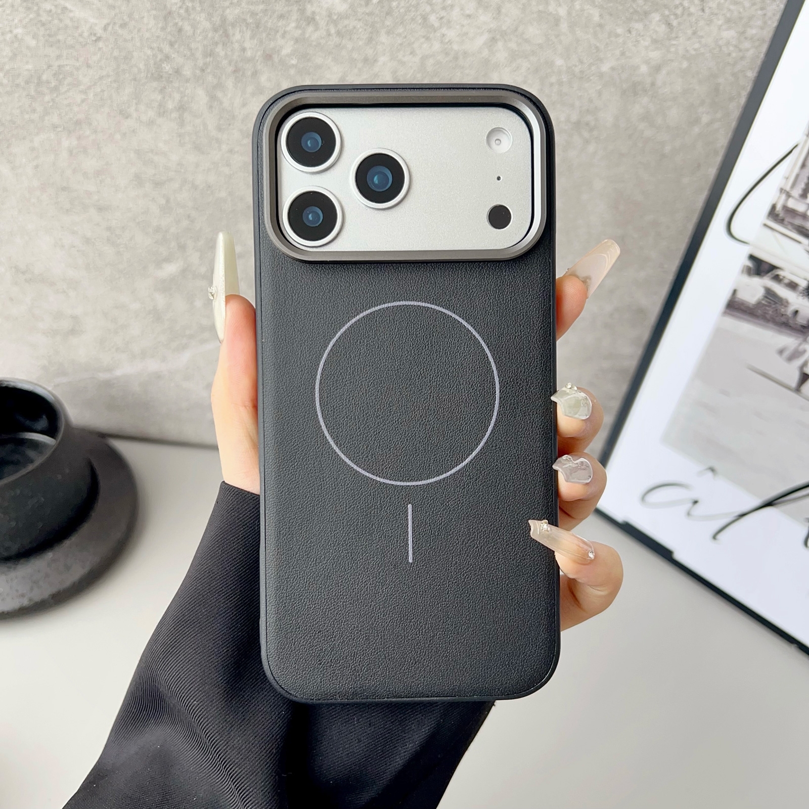 MagSafe iPhone Case with PU Leather Back & Raised Lens Frame for iPhone 17 Pro Max