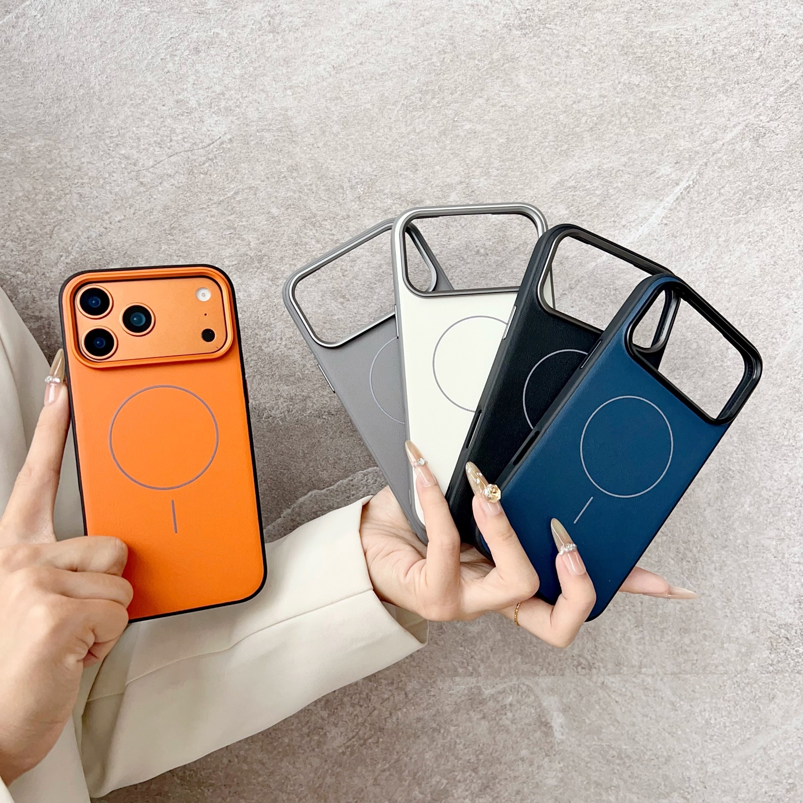 MagSafe iPhone Case with PU Leather Back & Raised Lens Frame for iPhone 17 Pro Max