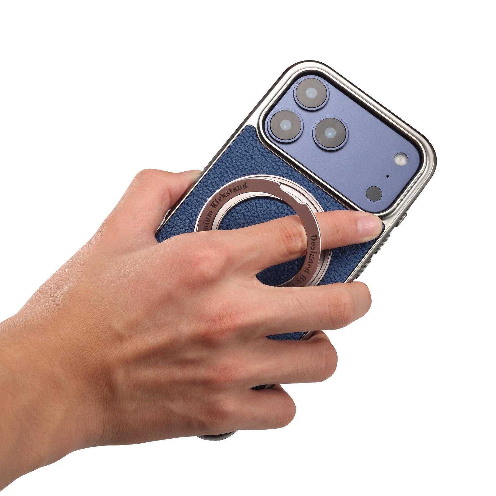360 Rotation Kickstand Magnetic iPhone 17 Pro Max Case - Airbag Shockproof Metal Stand, Blue