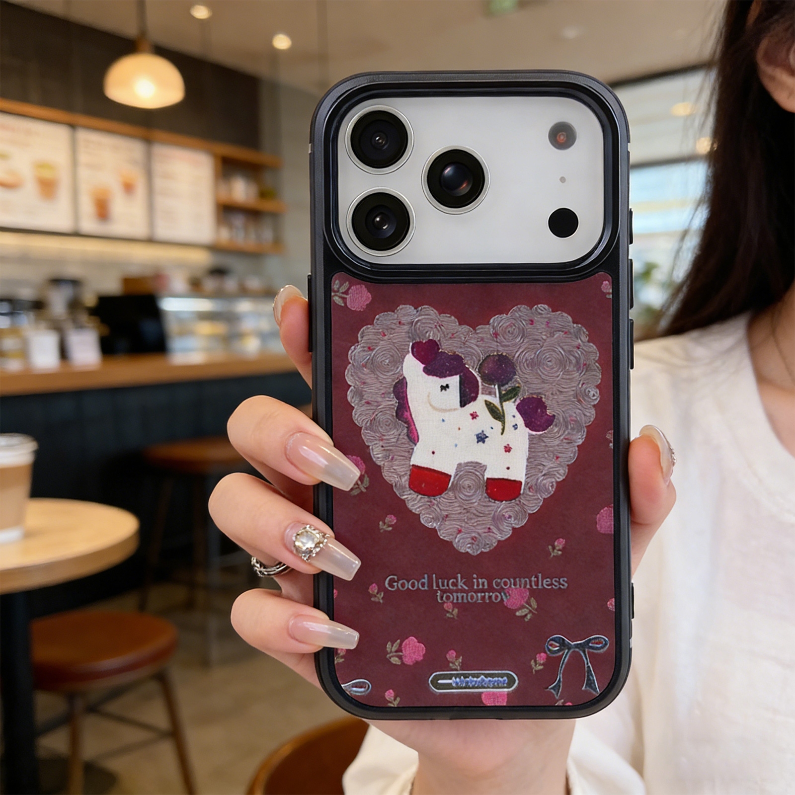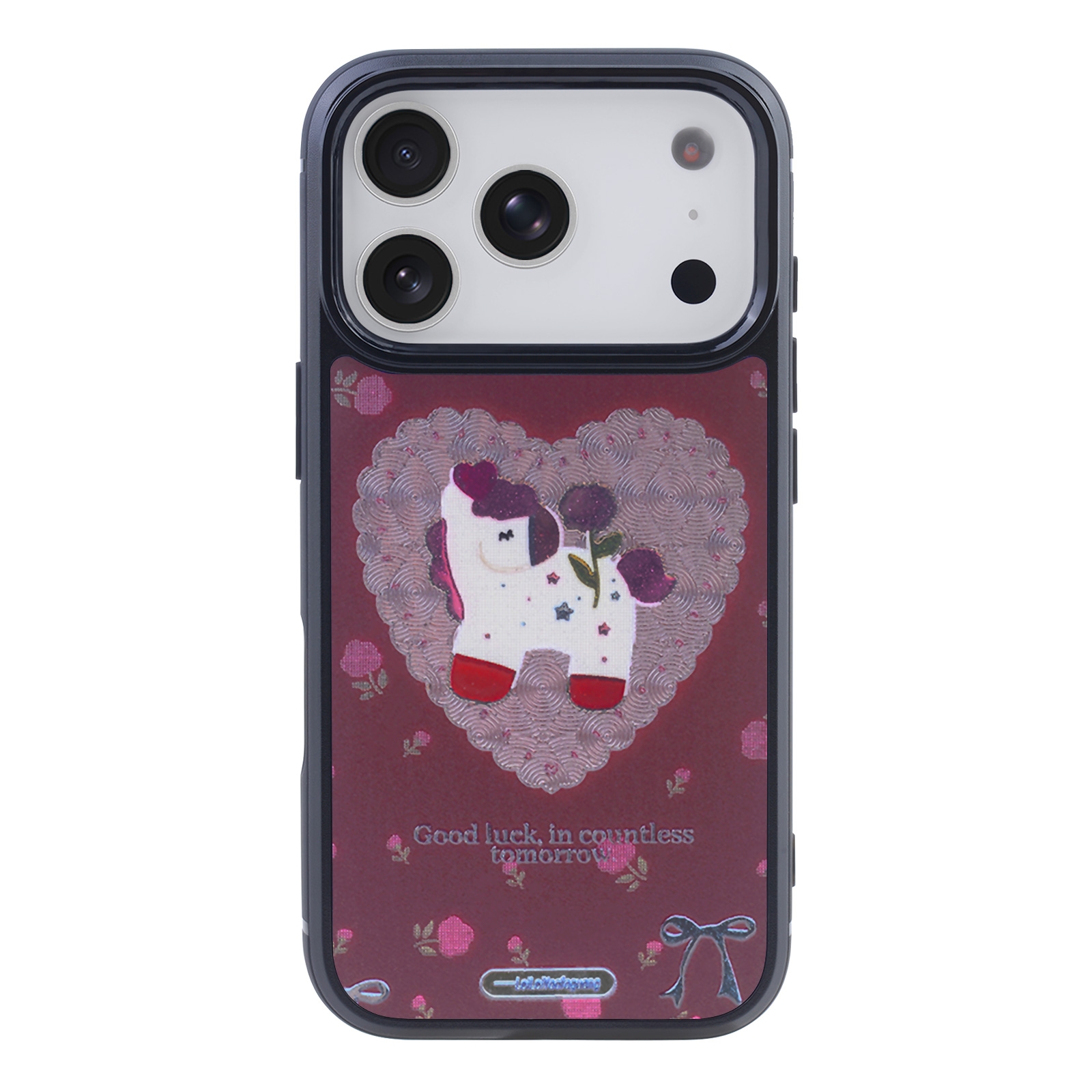 iPhone 17 Pro Max Magnetic Sparkly Unicorn Heart Case - Maroon Rose Print Cover