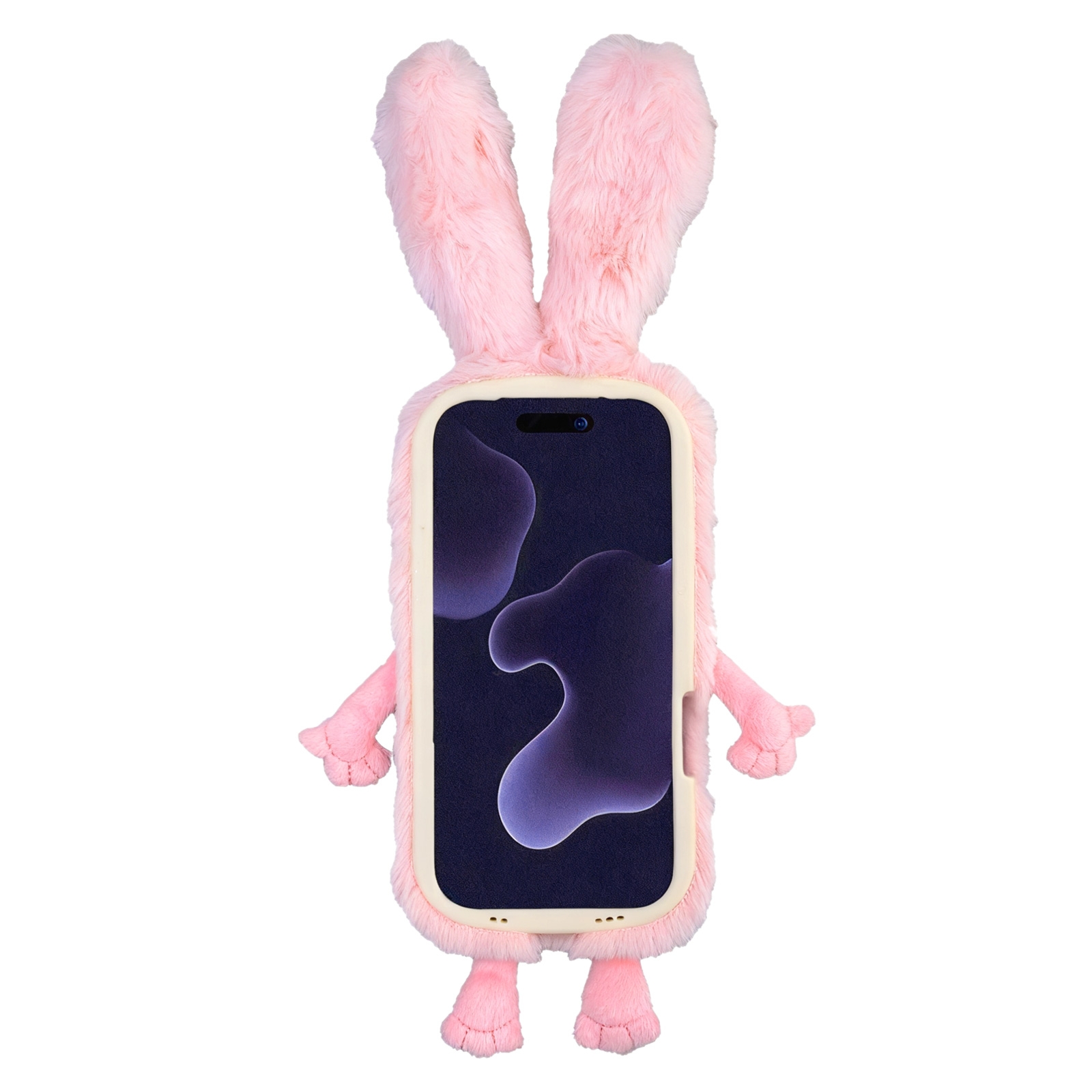 iPhone 17 Pro Plush Rabbit Case – Soft Furry Bucktooth Bunny Cover Pink