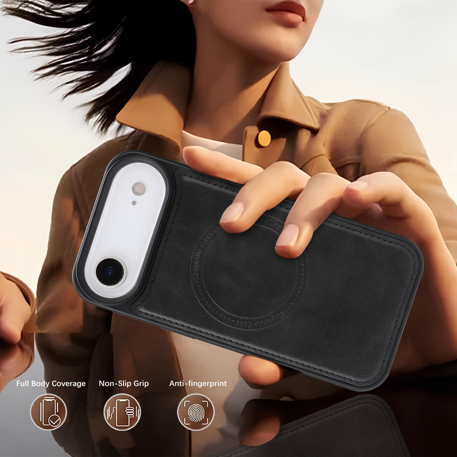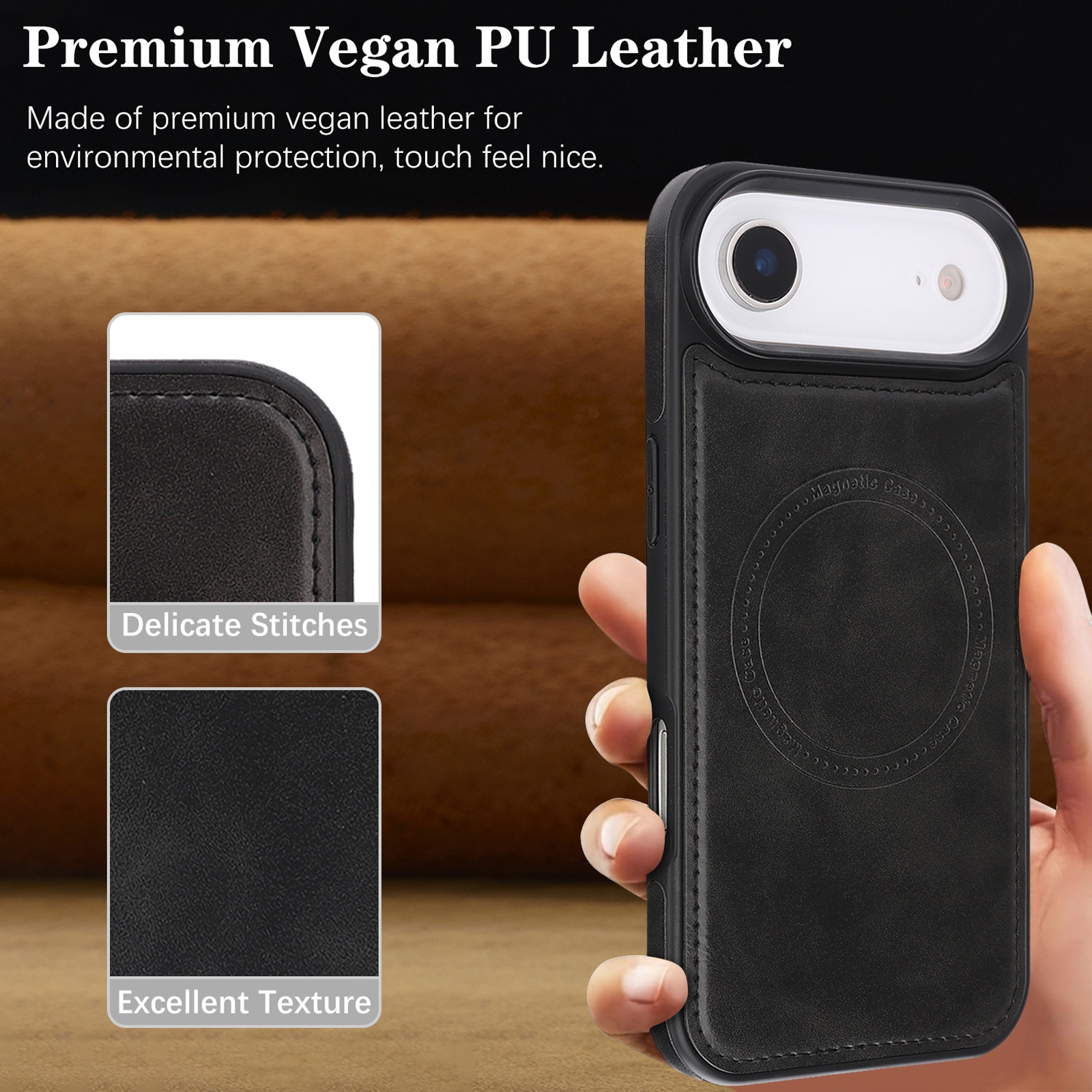 iPhone Air Magnetic Case – Vegan Leather Shockproof MagSafe Cover Black