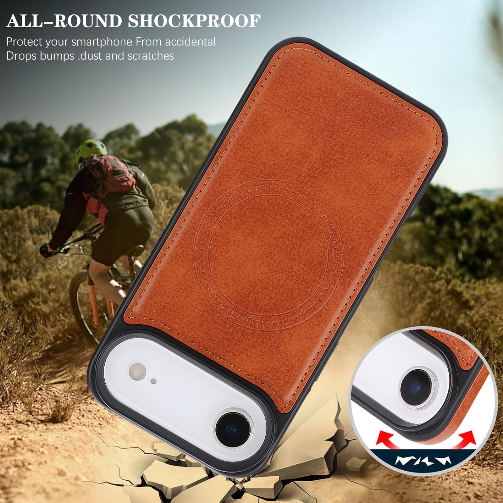 iPhone Air Magnetic Case – Vegan Leather Shockproof MagSafe Cover Light Brown