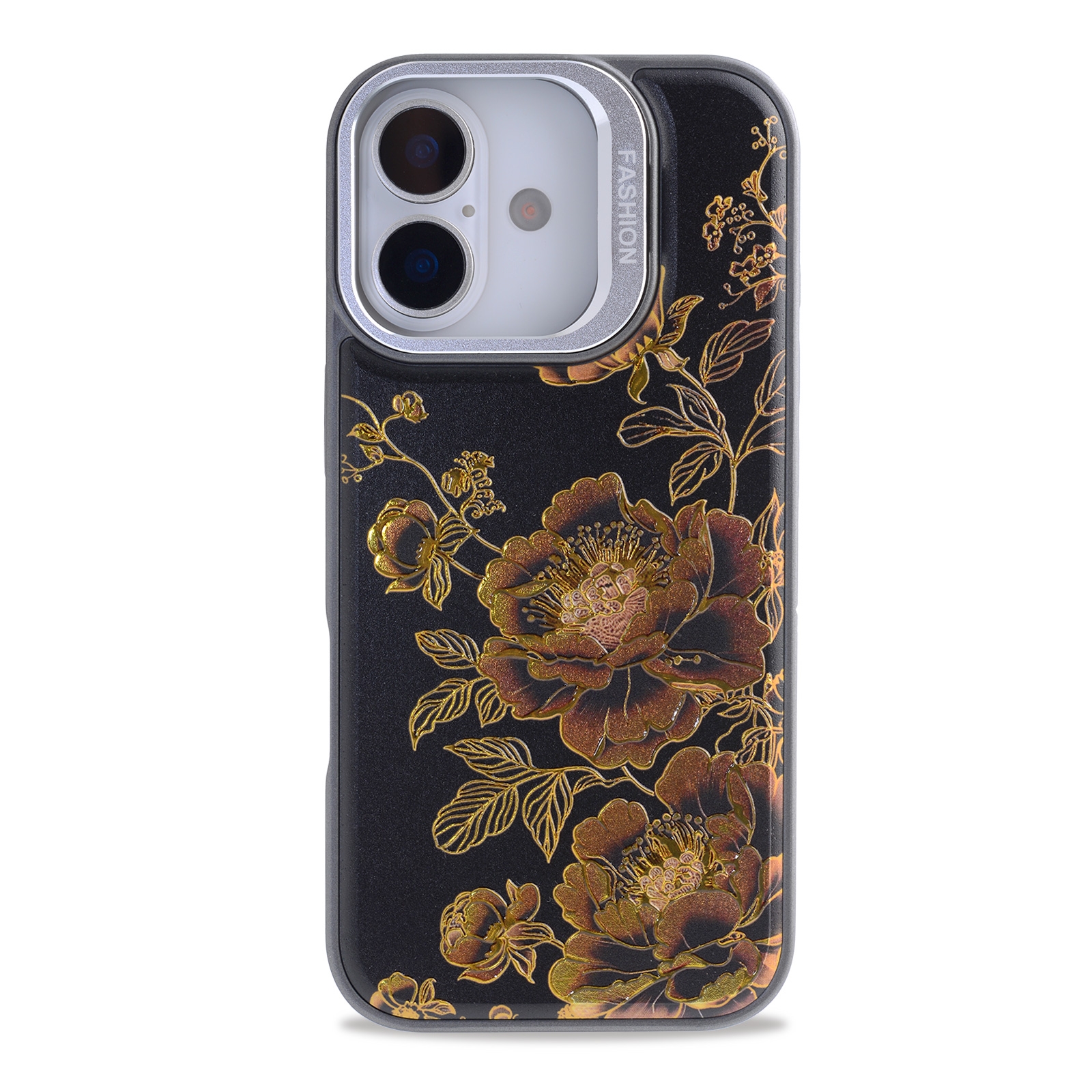 iPhone17 Black Background Gilded Peony Magnetic Case, Gold