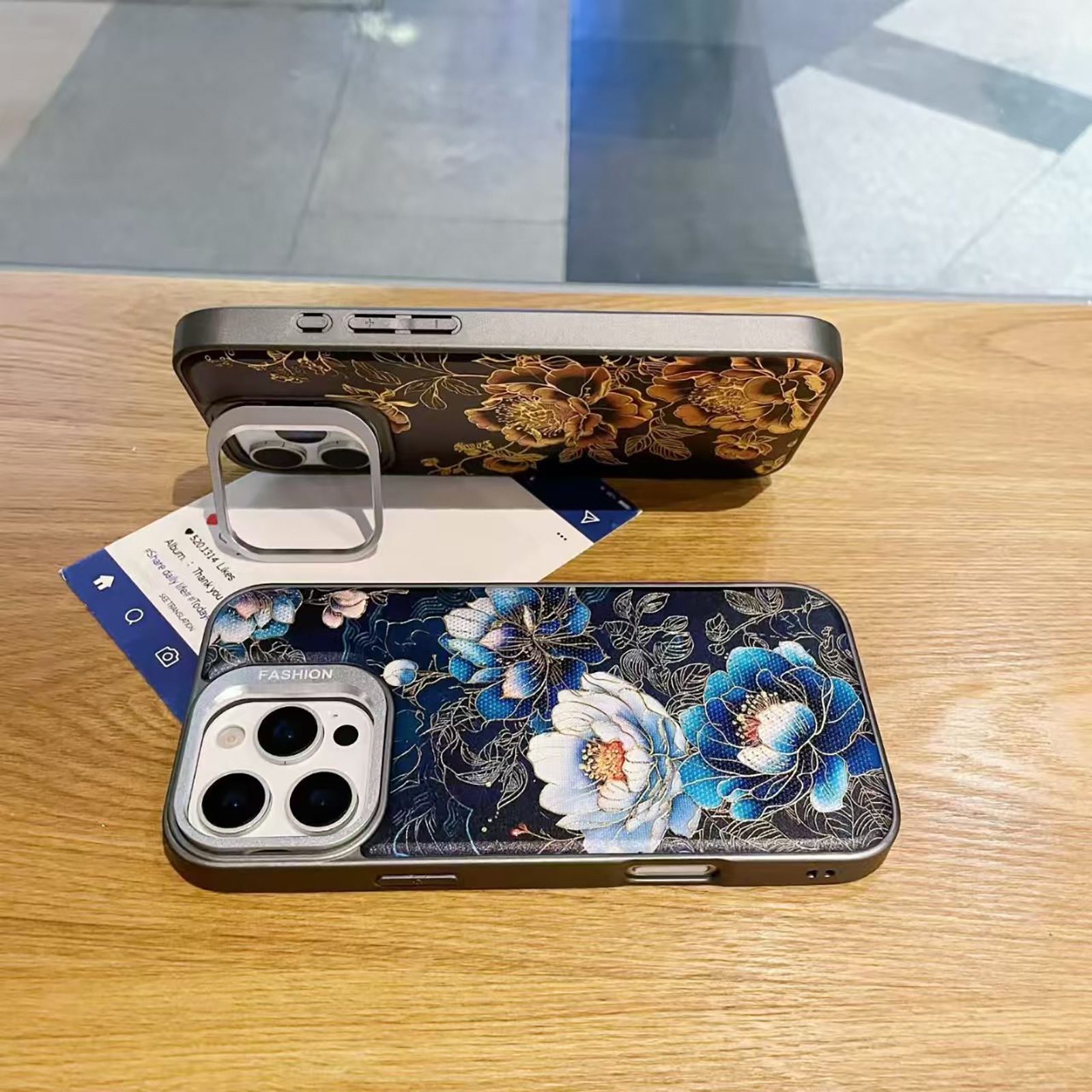 iPhone17 Blue Background Gilded Floral Magnetic Case, Blue