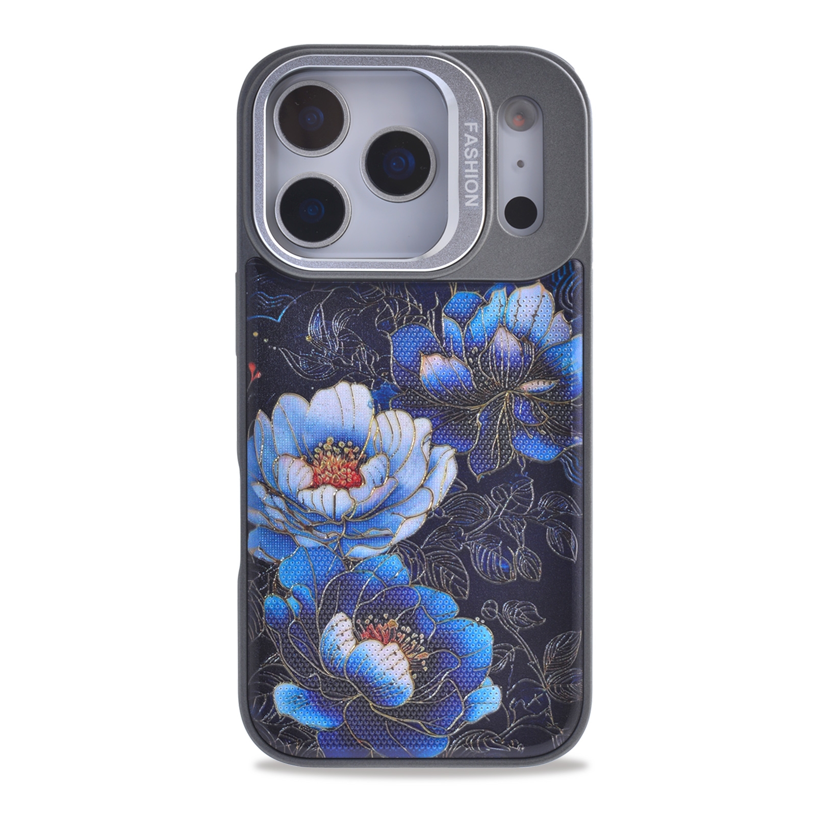 iPhone17 Pro Blue Background Gilded Floral Magnetic Case, Blue