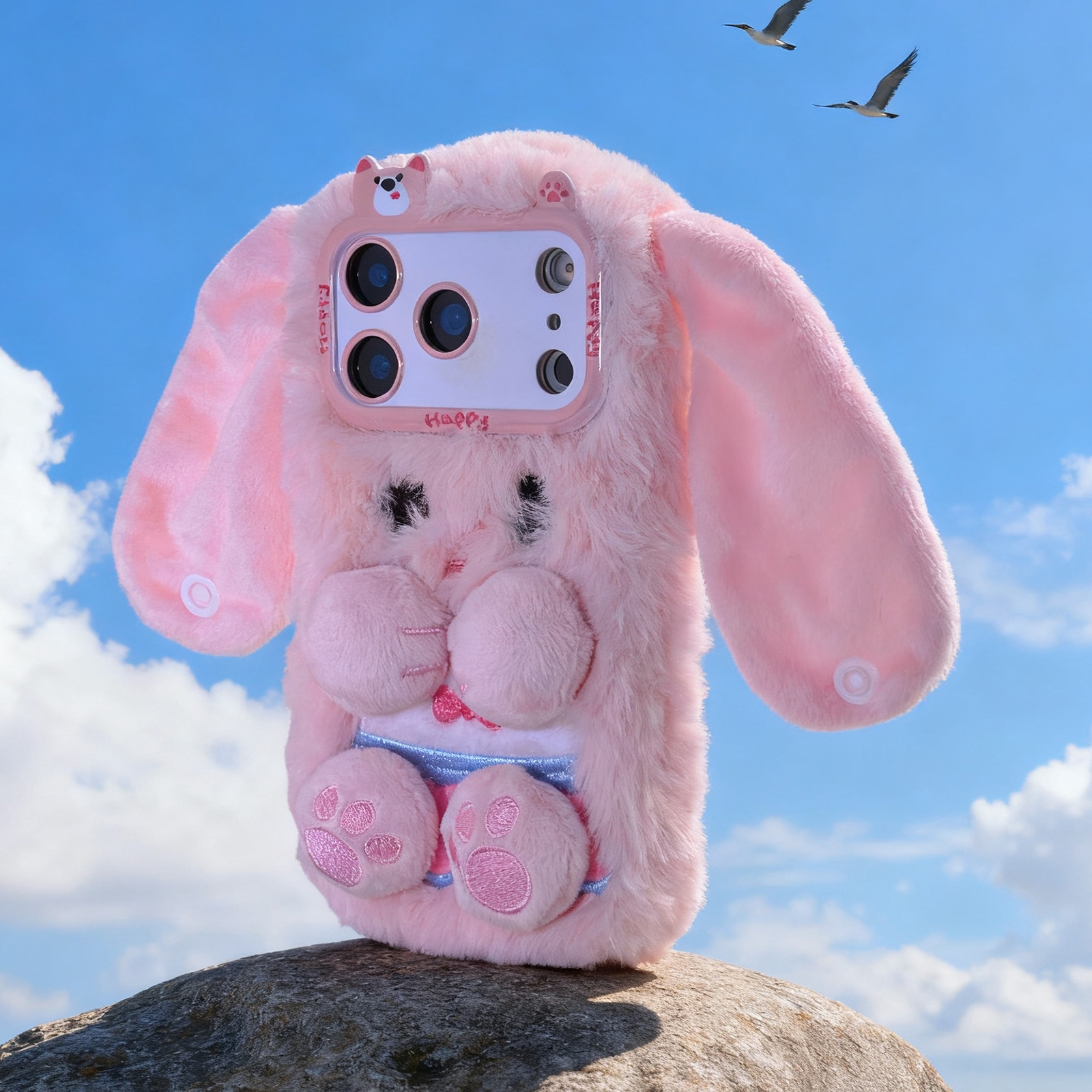 iPhone 17 Pro Rabbit Case – Long-Eared Plush Bunny Cover Pink