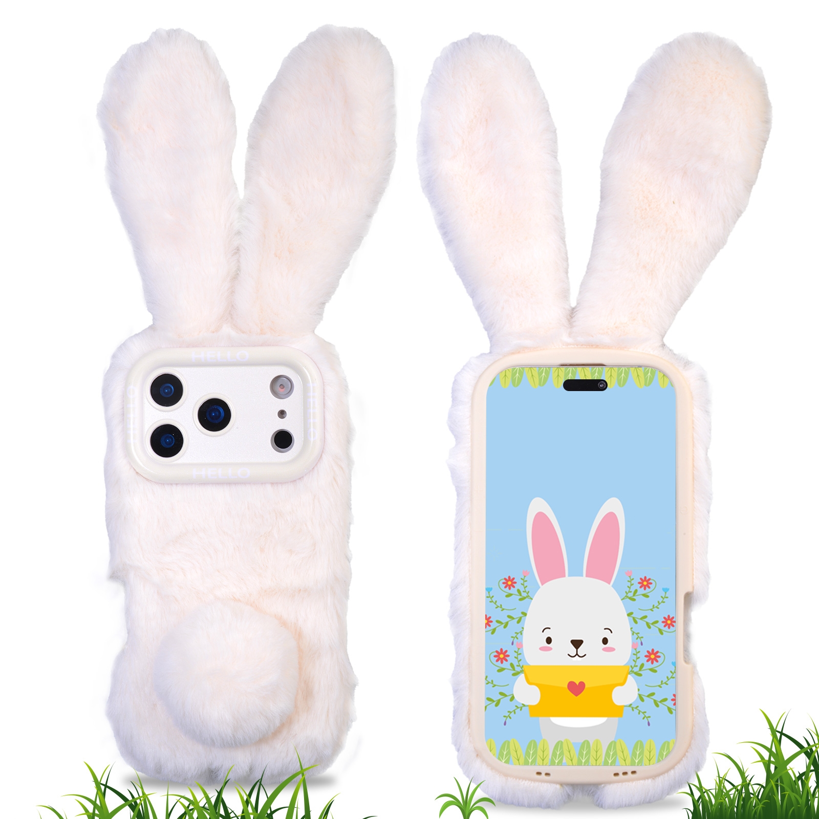 Rabbit Phone Case for iPhone 17 Pro – Beige Plush Protective Cover