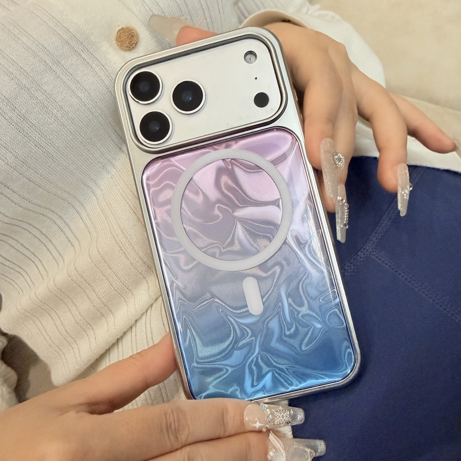 Iridescent Wave Phone Case for iPhone 17 Pro - Purple Blue Gradient with MagSafe Compatible Design, Blue