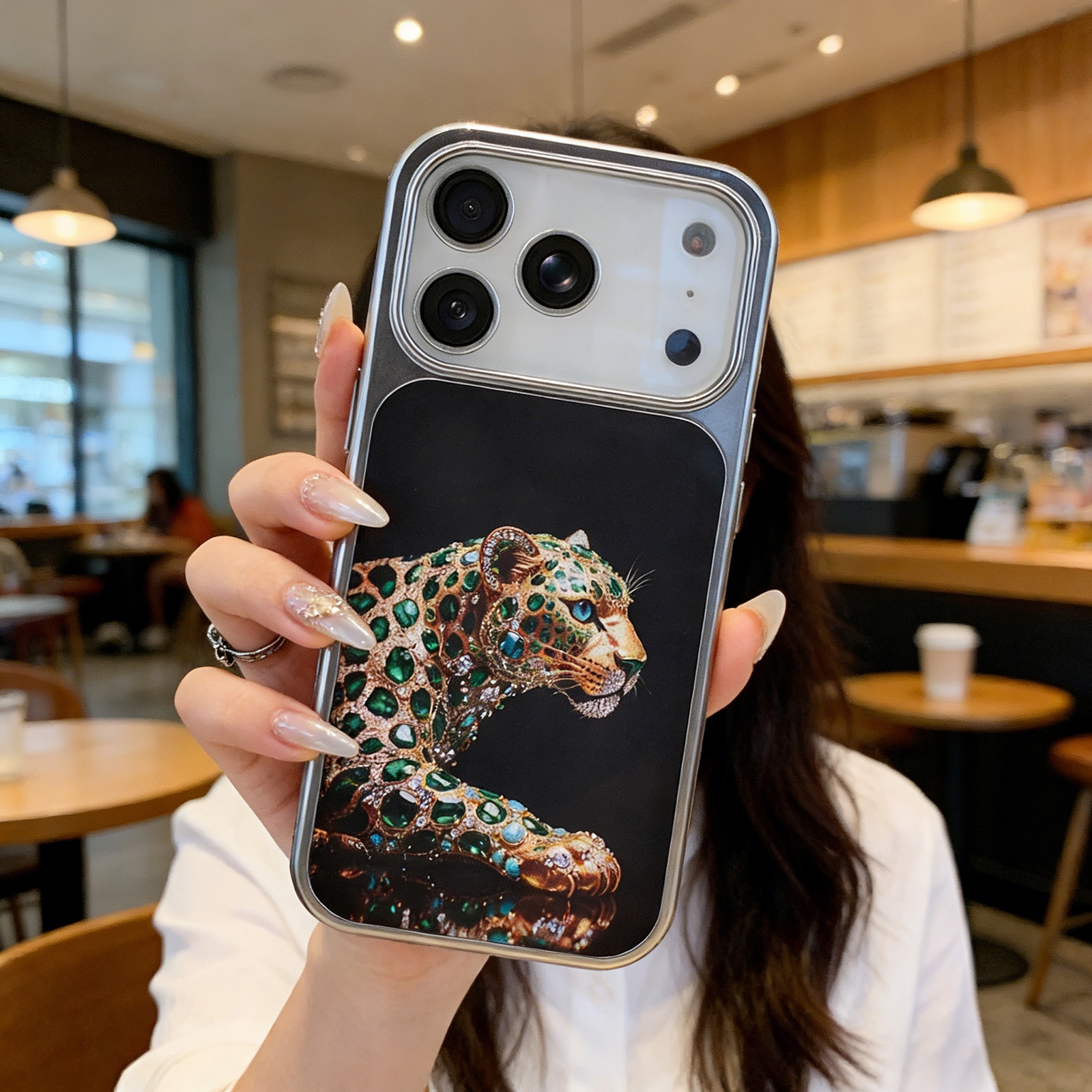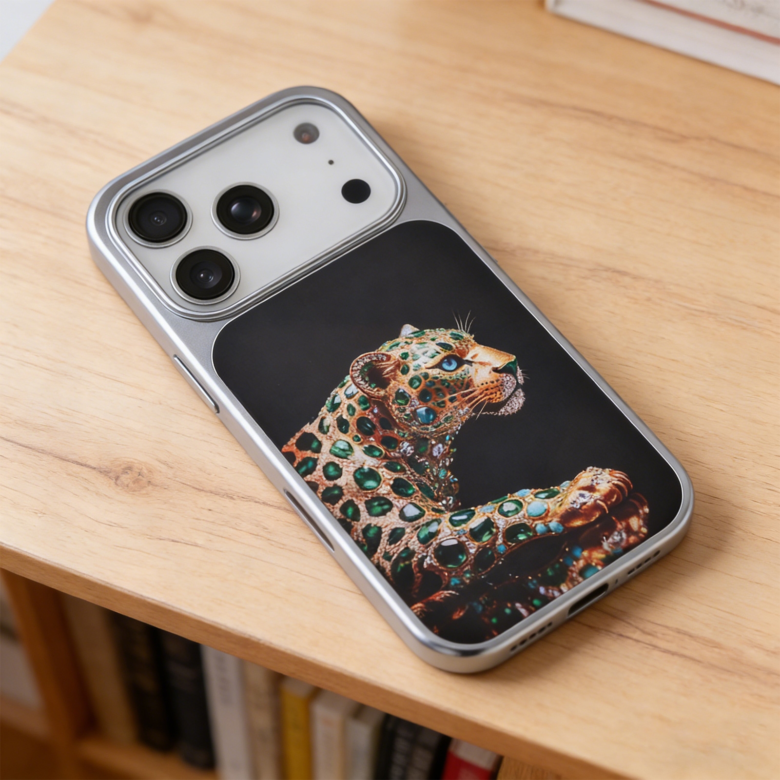 Jeweled Leopard Art Case for iPhone 17 Pro Max - Opulent Green Gem Design, Yellow