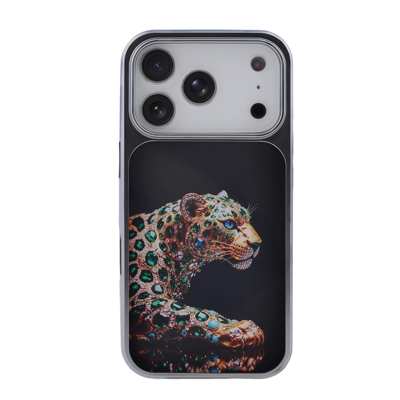 Jeweled Leopard Art Case for iPhone 17 Pro - Opulent Green Gem Design, Yellow