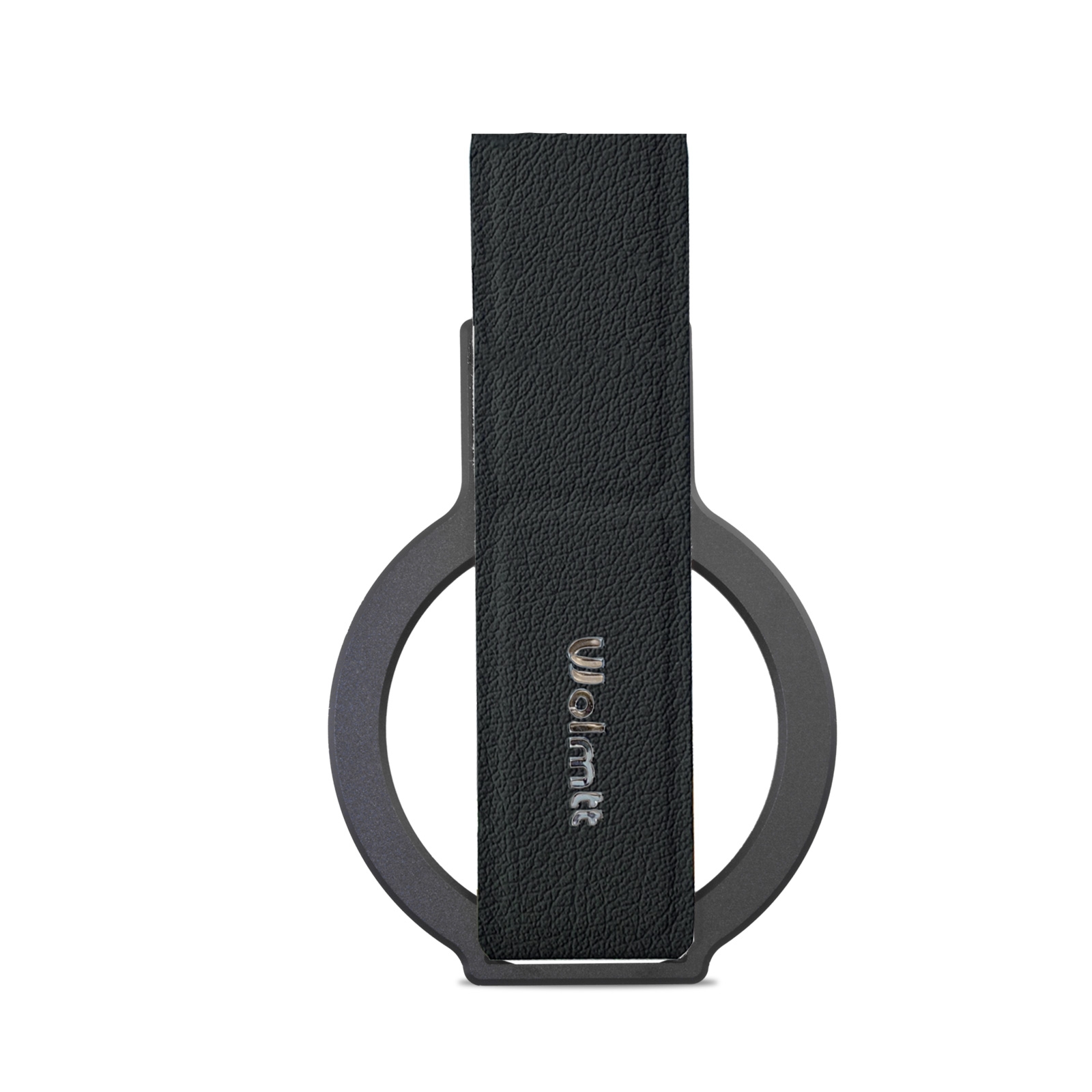 Magnetic Foldable Phone Stand with Finger Holder, Black - Black