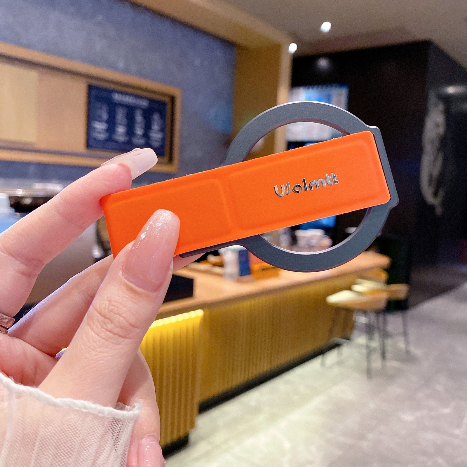 Magnetic Foldable Phone Stand with Finger Holder, Orange - Silver